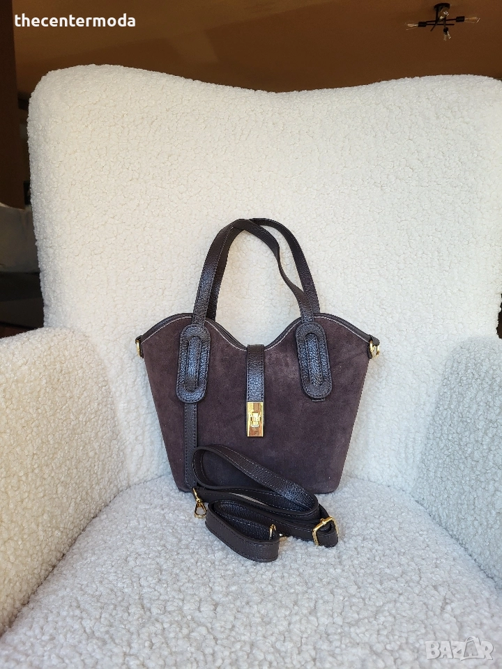 Чанта ,естествен велур в тъмно кафяво → Обява 52746241
