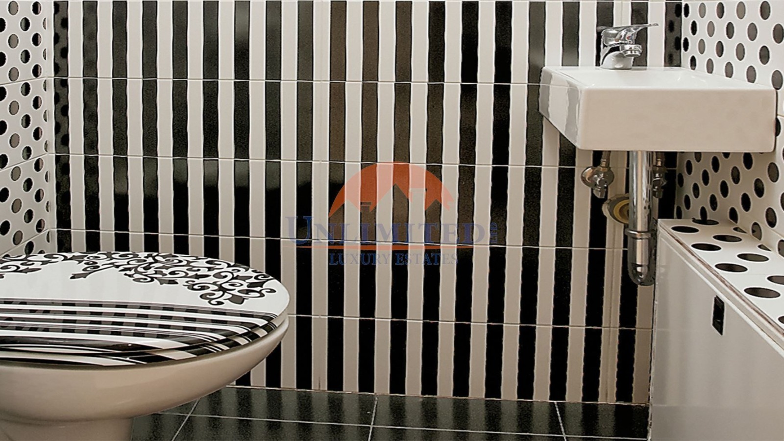 Банята и тоалетните са с луксозни покрития и дизайнерски детайли.