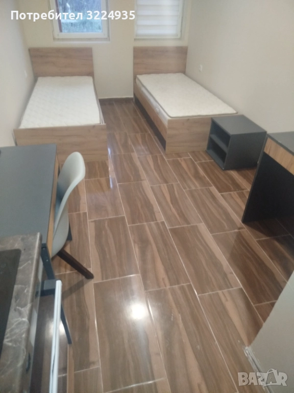 Пълно обзавеждане: две легла, гардероб, бюра, столове и др.