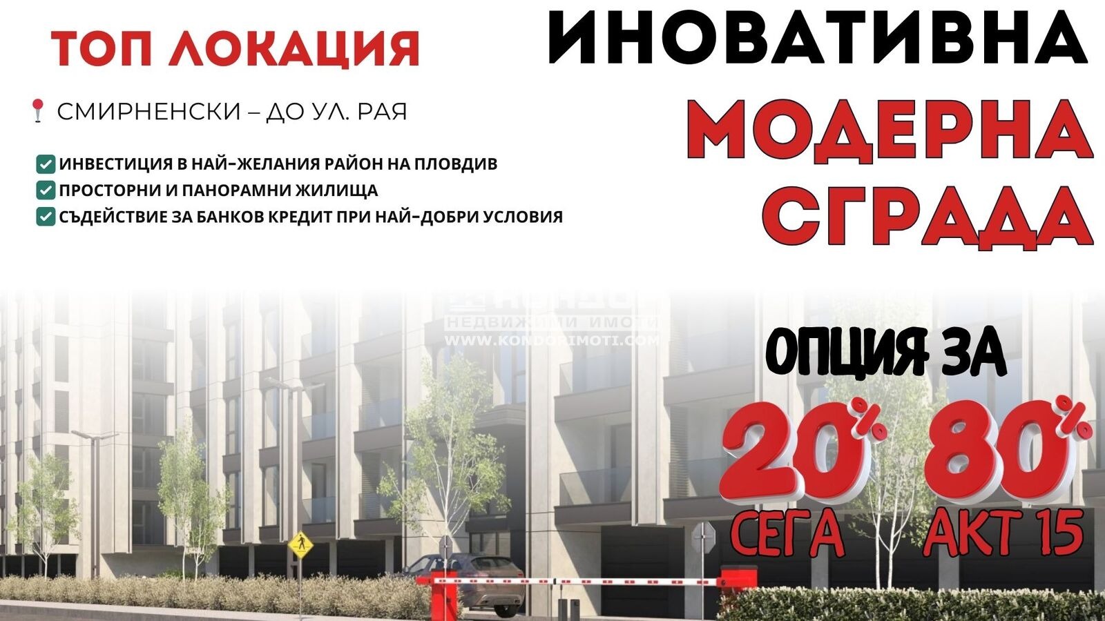 Оферта 67477: Предлагаме на вашето внимание многостаен апартамент с изложение юг/запад в новоизградена, иновативна и модерна сграда със собствен стил с изчистена визия, проектирана така, че да създаде максимален комфорт и уют за живеене. Жилището се състои от просторна ъглова дневна 28кв.м. оформена на кътове: кът за мека мебел, кухненска част с остров и отделна трапезария, три самостоятелни спални: детска 13кв.м и родителска 16кв.м. със собствена баня и дрешник + още една комфортна спалня с обособен дрешник 23кв.м., две бани с тоалетна, антре и две голями панорамни тераси. Проектът предвижда застрояване, просторни и панорамни жилища, вътрешен двор с оформени зелени зони за релакс и почивка. Сградата привлича вниманието със своята локация, разположена в близост до Гребна база и парк Отдих и култура, обособили се като едни от най-развиващите се и предпочитани райони за живеене в града, както и до няколко от най-добрите болници, а именно ( Пълмед, Селена, Хирургиите ). В близост до сградата има големи хранителни магазини, детска градина, училище, автобусни спирки и всичко необходимо за едно нормално ежедневие. Инвеститора осъществява сгради, които задават нов стандарт в жилищното строителство. Комбинирайки модерни технологии, безкомпромисно качество и прецизен дизайн, за да осигурим среда, която предлага комфорт, естетика и функционалност. Сградата ще бъде с ИЗЦЯЛО окачена, ВЕНТЛИРУЕМА ФАСАДА с енергийна ефективност от висок клас, система УМЕН ДОМ, високоскоростни асансьори, както и към всяко паркомясто ще има прекаран трифазен ток за поставяне на ЗАРЯДНА СТАНЦИЯ за електроавтомобили, Видеонаблюдение, най-висок клас блиндирани врати за висока степен на сигурност, master key система за още по-сигурен контрол на достъп, автоматизирани системи против пожари , които осигуряват бърза реакция в случай на необходимост. Паркирането е решено с голям подземен както и надземен паркинг като има голям избор на паркоместа и гаражи. Гъвкави схеми на разсрочено плащане в рамките на строителството, както и съдействие за банково кредитиране с изключително изгодни условия за клиенти на агенция !!!