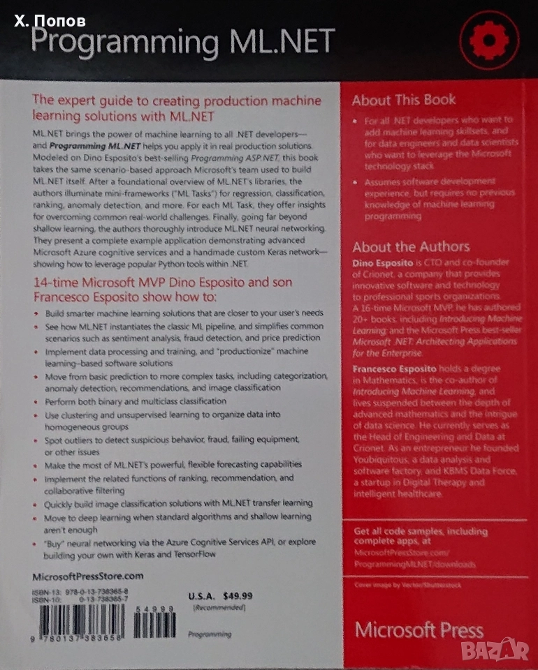 Книга Programming ML.NET → Обява 52747842