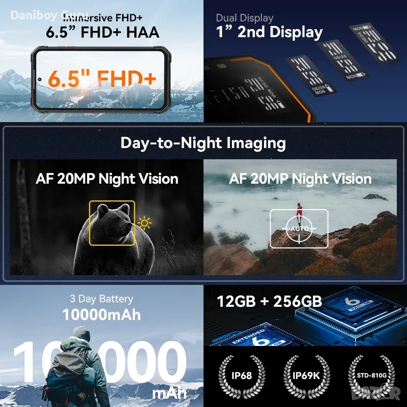 IIIF150 B2 6.5"FHD+ дисплей, здрав мобилен телефон, нощно виждане, 10000mAh, 48MP камера, Android 13, 12GB (6GB + 6GB), 256GB RAM.