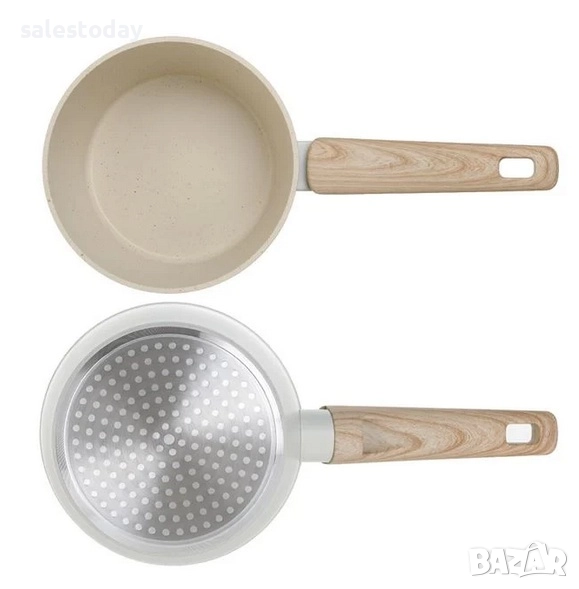 удобството в кухнята. Дръжките на тенджерата и капака са с ефект на