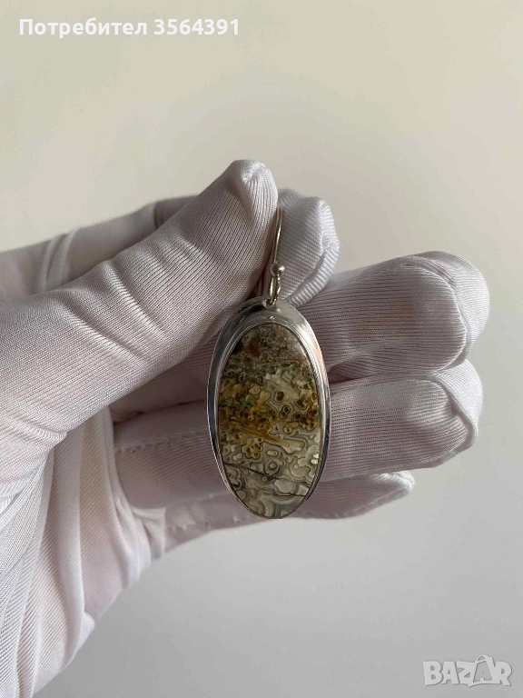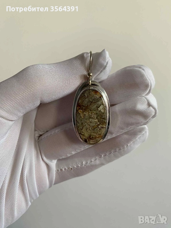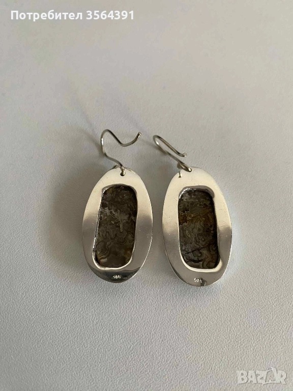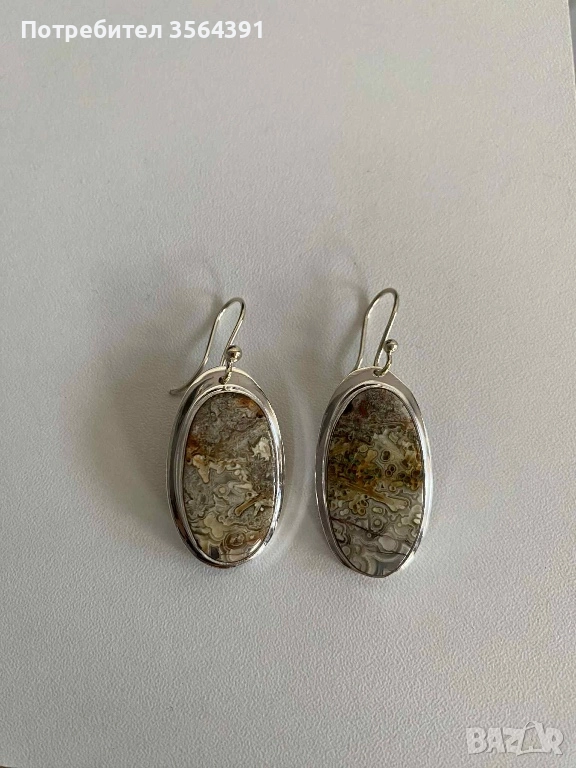 Сребърни обеци с ахат → Обява 52748289
