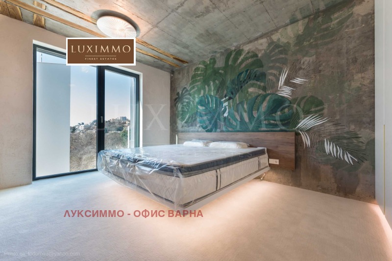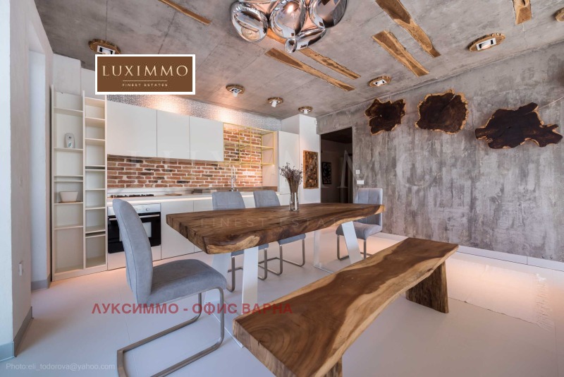 Дизайнът е уникален - естествен и модерен, предизвикателен и светъл, носещ посланието на автономност, релакс и морската атмосфера. В бетоновите плочи по тавана на апартамента са вградени естествени дървени орнаменти от акация. Тухлените стени и бетонът са използвани за естествена декорация, като са допълнително обработени, импрегнирани и грундирани. Мебели, кухня, матраци и дивани, атрактивни плочки, осветителни тела - всички са на известни италиански марки. Вниманието в трапезария е с акцент на екстравагантната маса, изработена по поръчка, от ценно и рядко дърво от Амазонка. Банята е отделена със стъклена врата, за изобилието на слънчева светлина, а всички санитарии са първокласно немско качество.