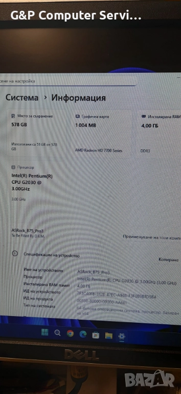 Продавам: Евтин настолен компютър, инсталиран с Windows 11 и готов за работа !
