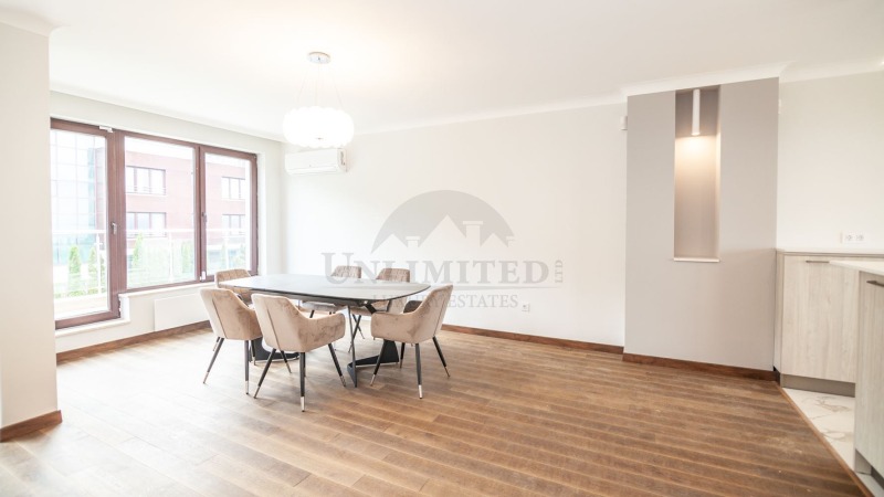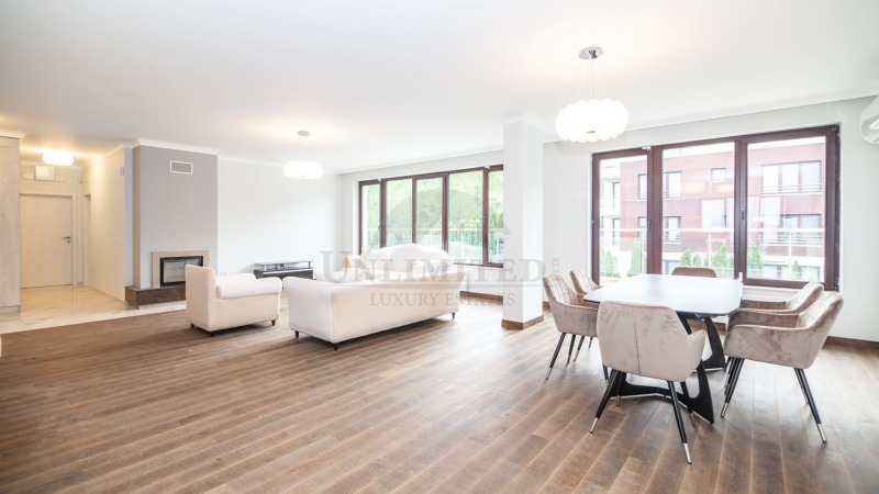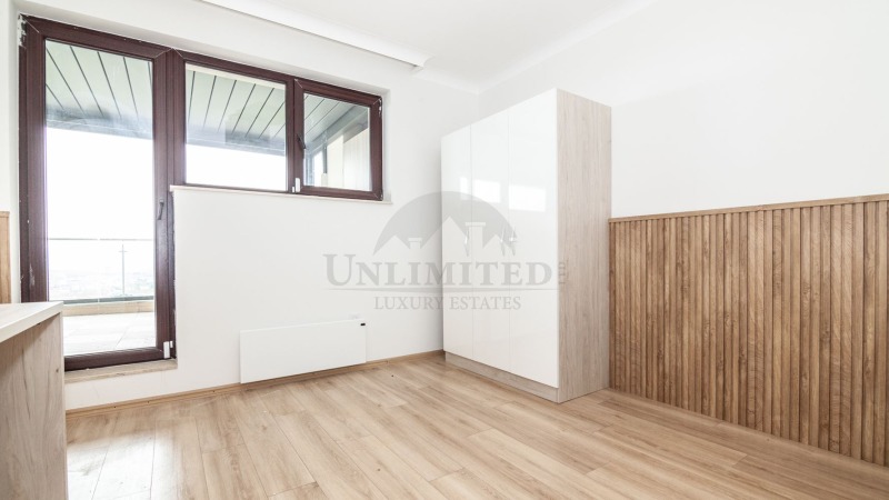 Apartment on the top floor with 360 degree views of Sofia and Vitosha, in a new building. It consists of: a spacious living room with a fireplace, a kitchenette, a master bedroom with its own, two bedrooms, a guest bathroom, large covered terraces with garden furniture and a barbecue. The complex has an outdoor pool, children's corner, security and year-round access. One parking space included in the price, it is possible to rent additional parking spaces. Price without VAT.