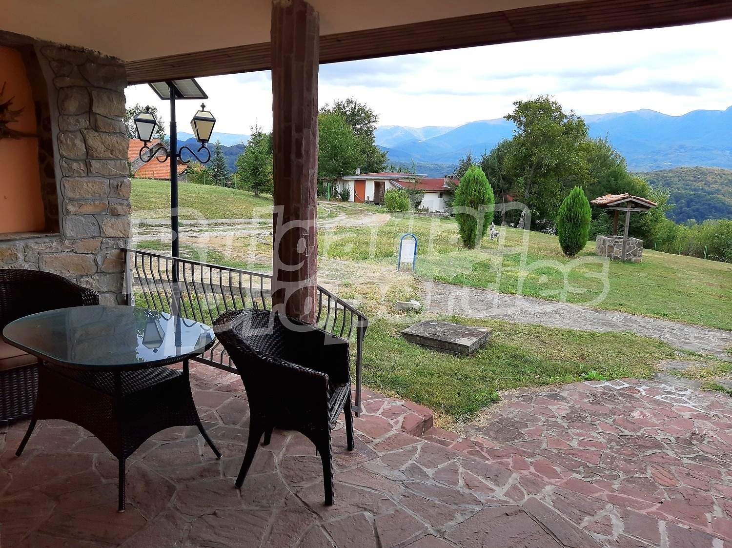Комплексът е разположен върху просторен, равен и слънчев парцел с площ от 3 784 кв.м, с южно изложение и впечатляваща панорама към билото на Стара планина. Дворното пространство е оформено с тревни площи и две панорамни тераси, разположени пред басейна идеални за отдих и социални събития на открито.