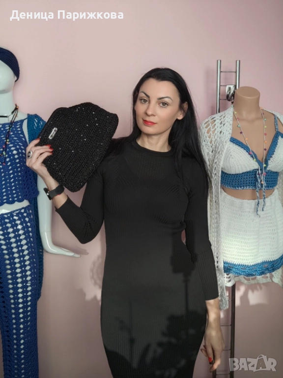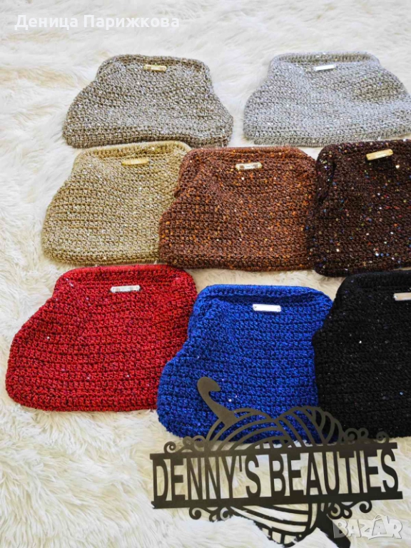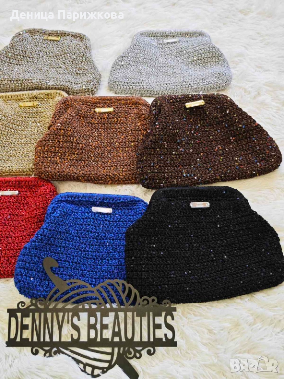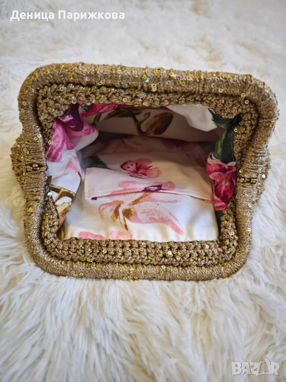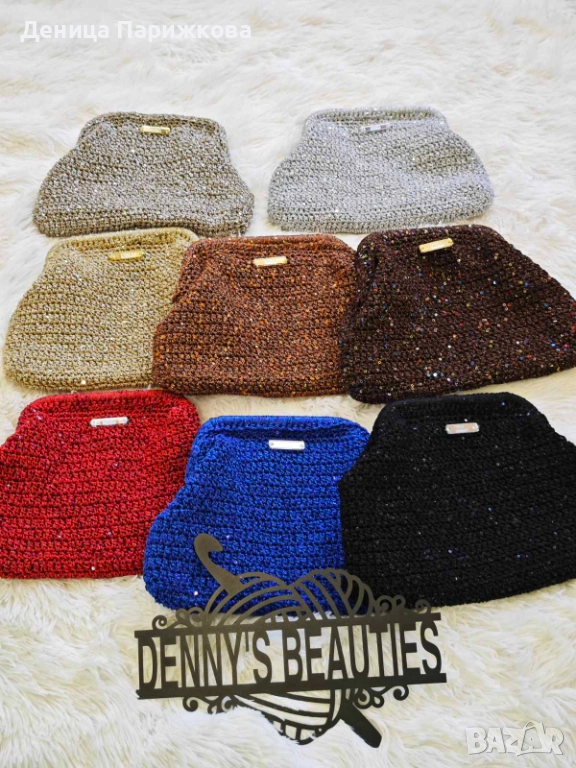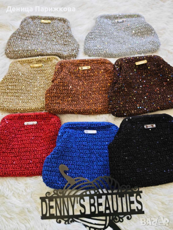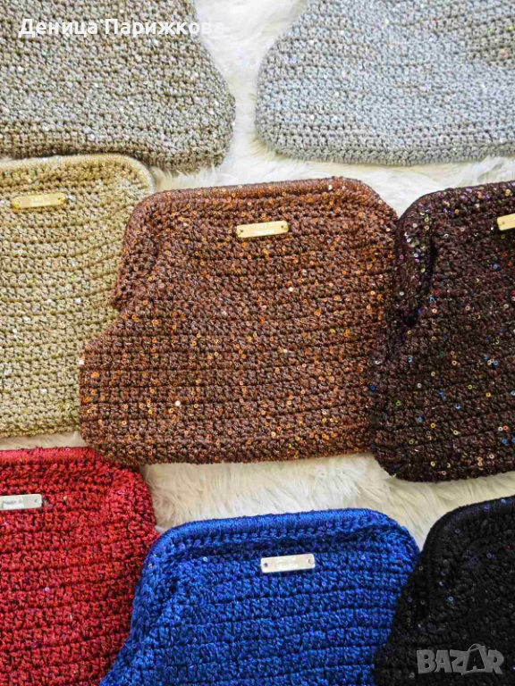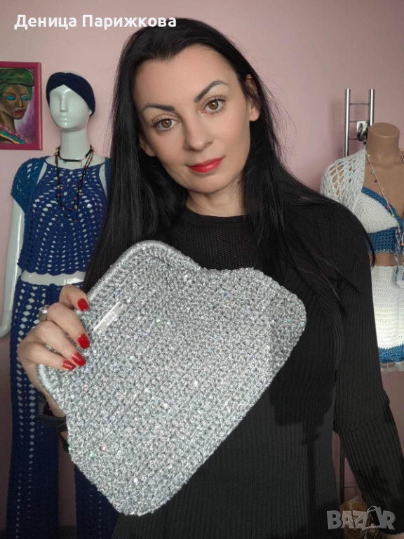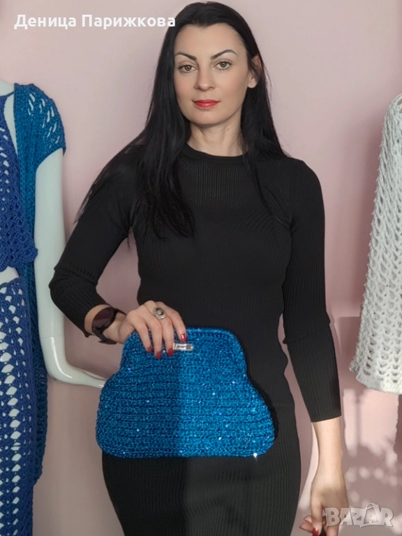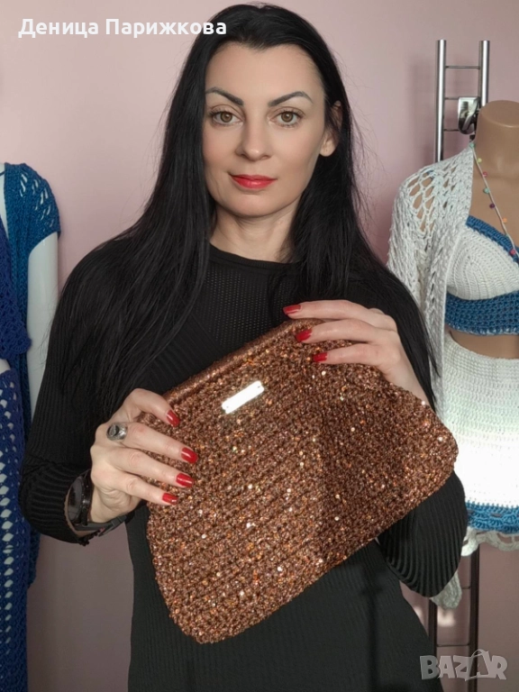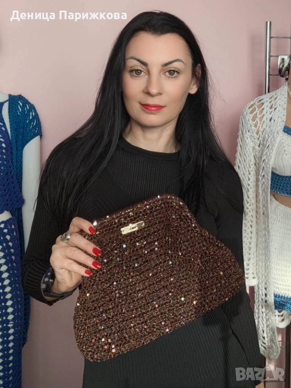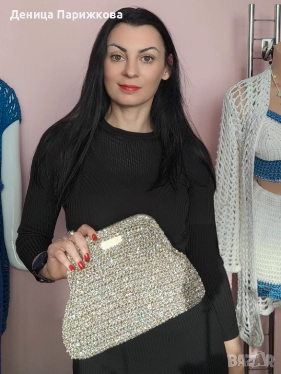Ръчно плетена чанта клъч „Аврора“ – Елегантност с блясък от пайети