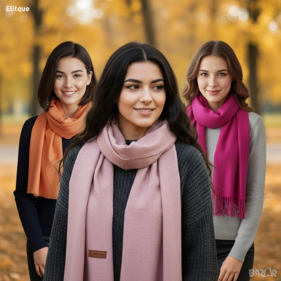 Материали: висококачествен кашмирен бленд (мек, нежен, топъл); Размер: универсален, достатъчно дълъг за различни начини на връзване; Цветове: оранжев, розов, циклама; Комфорт: не дразни кожата, не боцка, не се мачка лесно; Устойчивост: запазва формата и цвета си; подходящ за ежедневно носене; Подходящ за: зима, есен, празници, подарък, работа, пътуване, ежедневие.