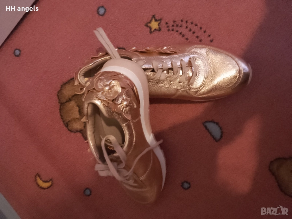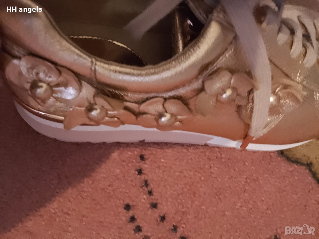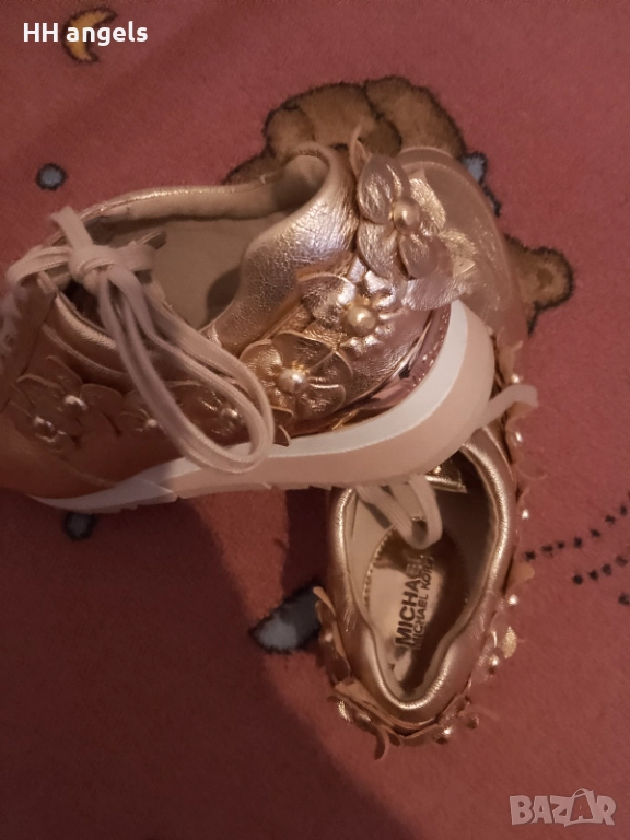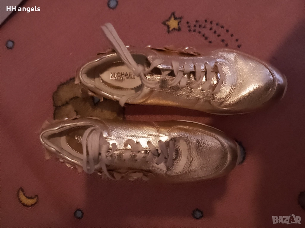 Michael Kors стахотен лимитиран модел,естествена кожа,8M по етикет,отговарят на 38.5 номер,стелка с дължина 25.5 см.В цвят розово злато са,донесени ми от Америка,но са ми с една идея по-големи.Чисто нови.