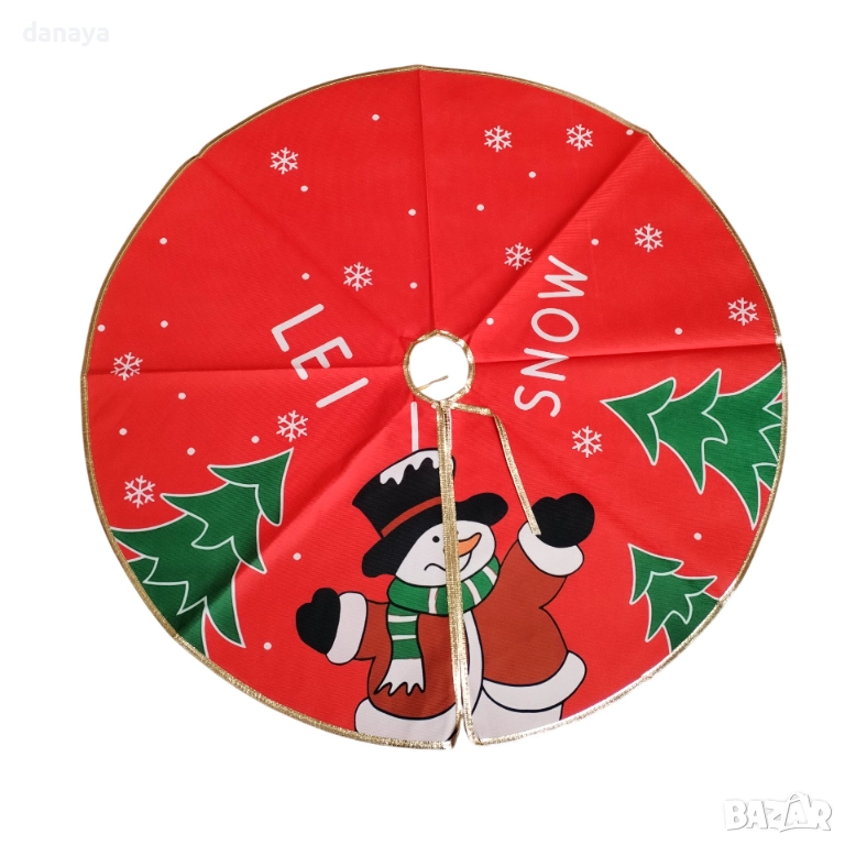 Изработена от здрав текстилен материал с фина текстура, коледната подложка е лека, удобна за поставяне и прибиране, не се мачка лесно и запазва формата си. Златистият кант придава елегантен завършек и допълнителен празничен блясък. Подходяща е както за естествени, така и за изкуствени елхи и се вписва отлично в класически, модерен или скандинавски коледен интериор.