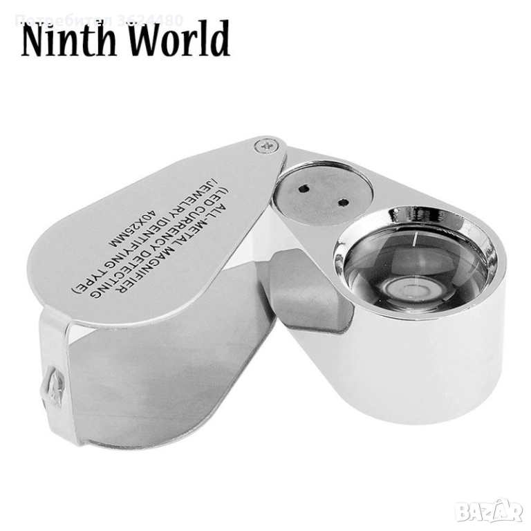 Бижутерска сгъваема лупа с осветление 40х, 25 мм.
