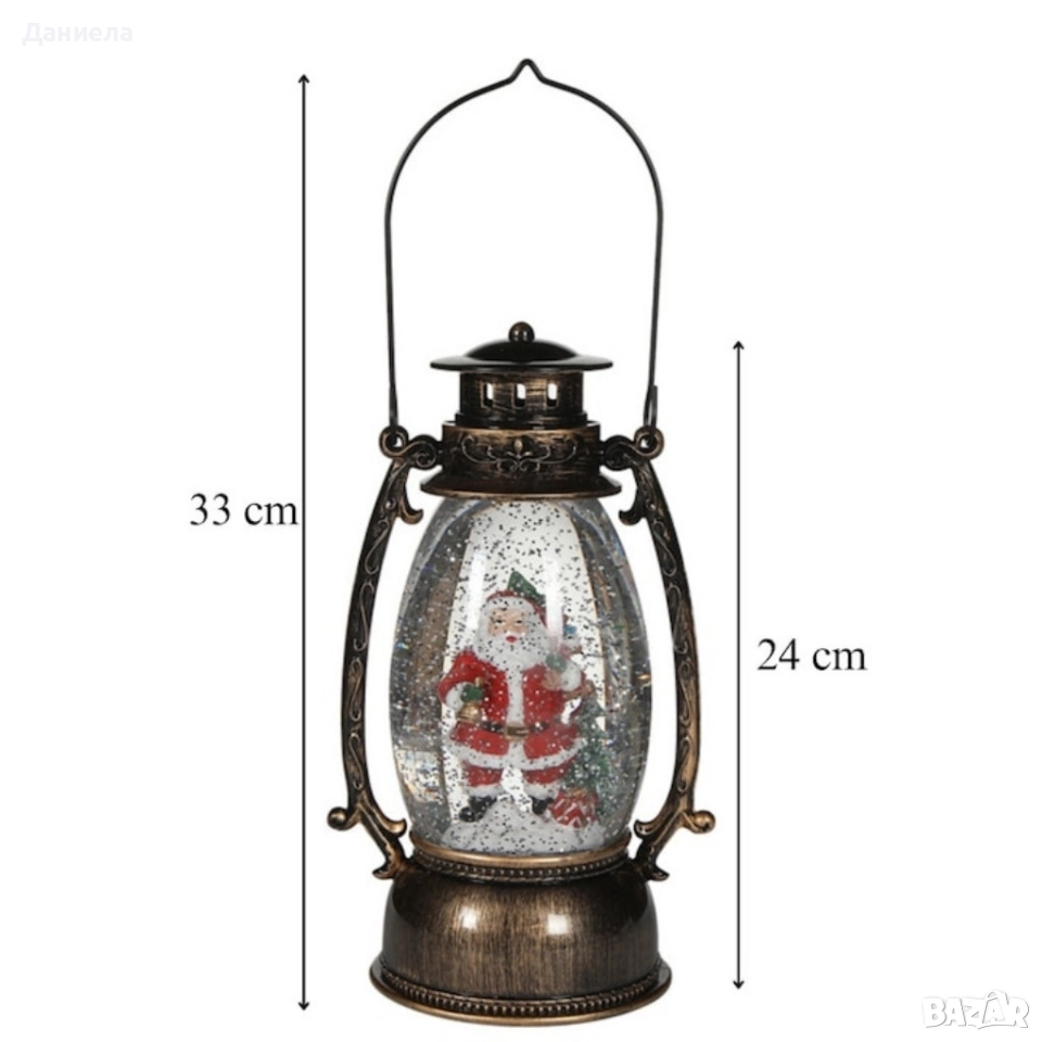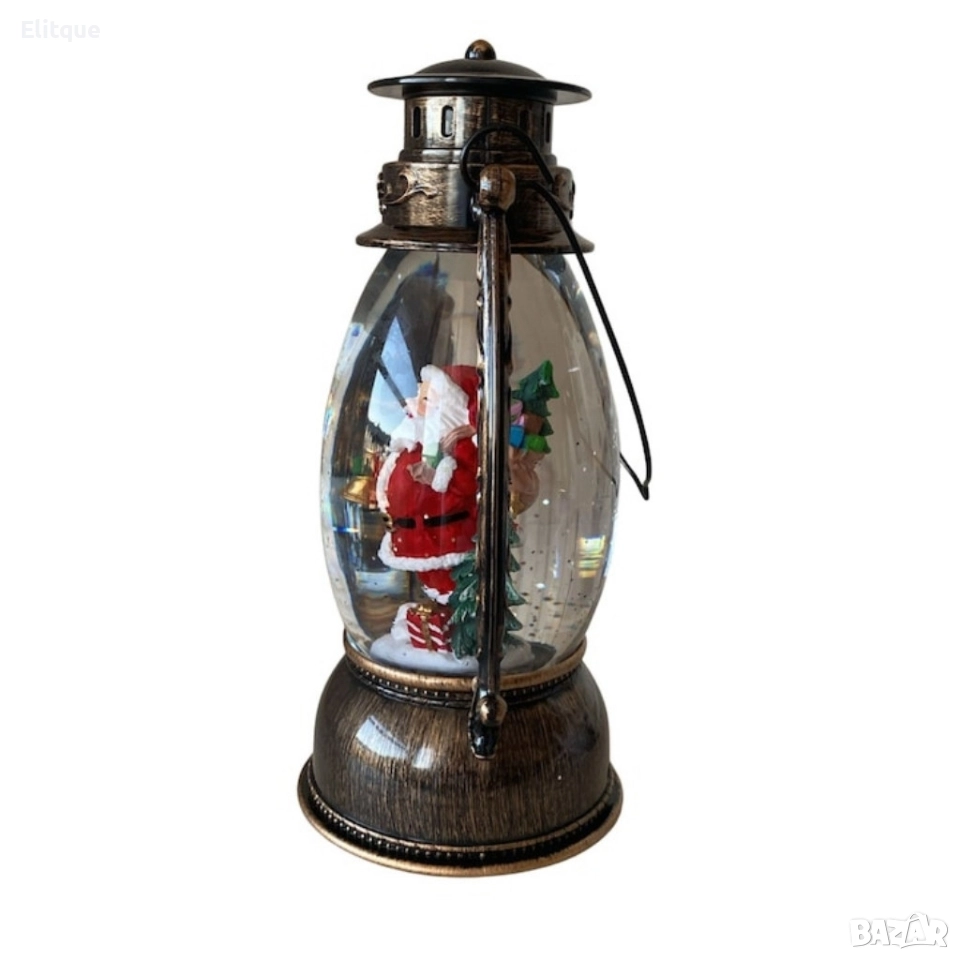 Коледен декоративен фенер – LED светлина, въртяща се фигурка на Дядо Коледа, снеговалеж и музика