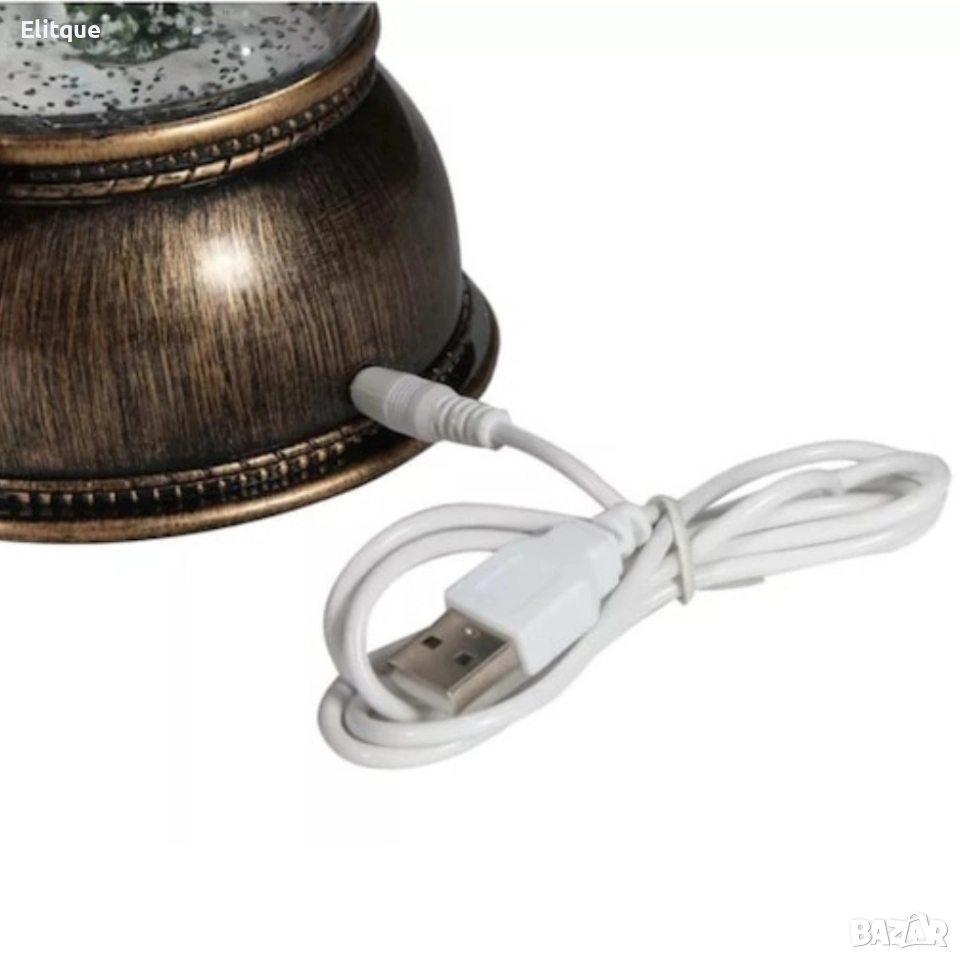 Материали: висококачествена ABS смола и прозрачен корпус с течност и блестящи частици; Размери: височина 24 см (33 см с дръжката), диаметър 14 см; Светлина: топла LED, дълъг живот; Захранване: USB кабел (включен) или 3xAA батерии (не са включени); Безопасност: стабилна основа, LED без нагряване; Допълнителни елементи: автоматичен снеговалеж, опция за музика / само светлина; Подходящ за деца: да – безопасен за използване в интериор; Гаранция: 12 месеца.