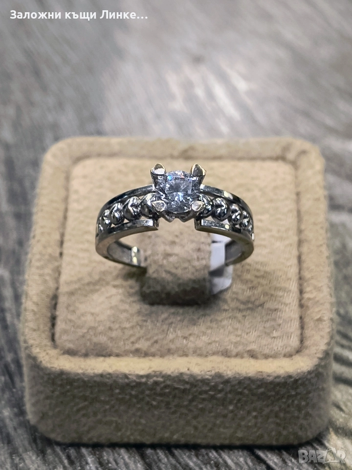 Златен Пръстен от бяло злато с камък.