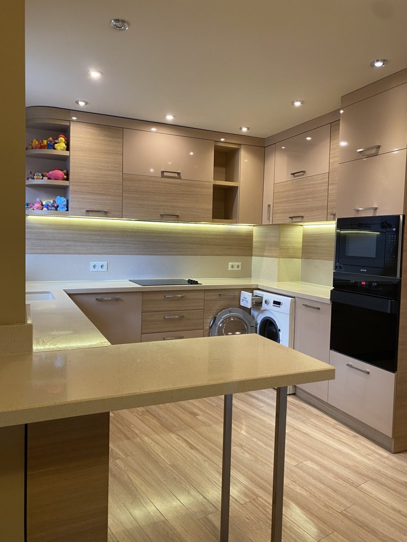 Кухнята е оборудвана с всички необходими електроуреди: готварска печка, микровълнова фурна, керамичен котлон, аспиратор, пералня и съдомиялна машина.