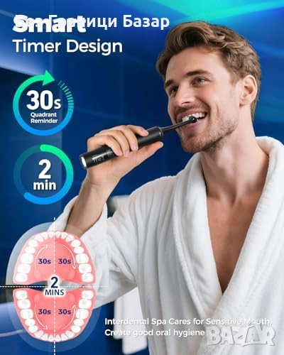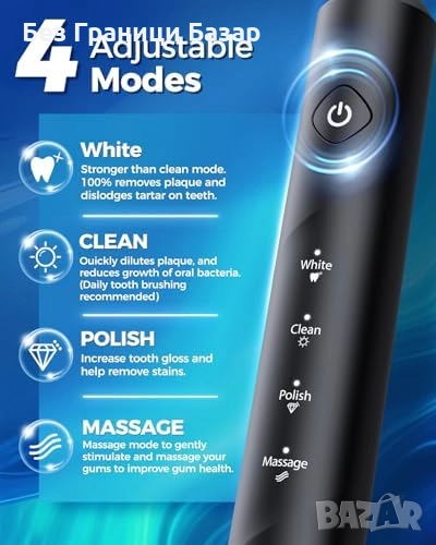 Нова Електрическа четка за зъби с 8 глави, 4 режима и 60 дни батерия