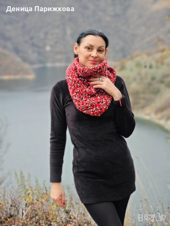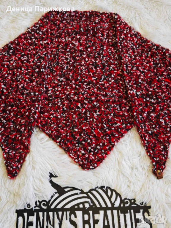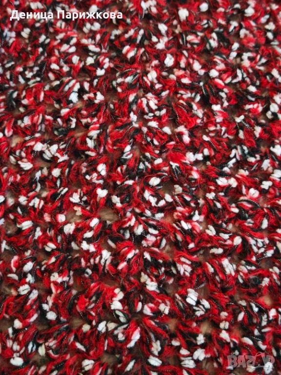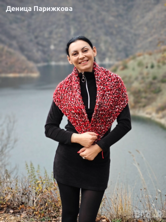 Изработен е в изящен черно-бяло-червен меланж, който съчетава трите цвята в красива, жива и стилна смес. Този шал е създаден за жената, която цени качеството, топлината и уникалната ръчна изработка.