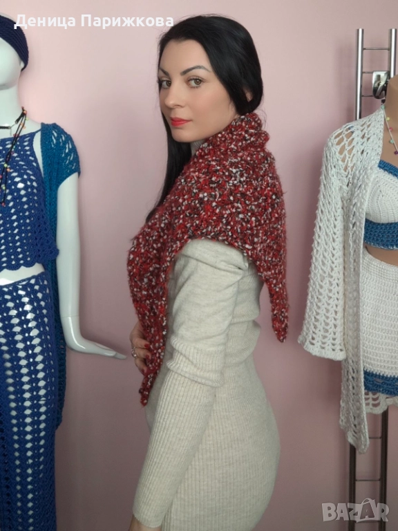Ръчно плетен триъгълен шал „Верона“ – бутиков дизайнерски модел