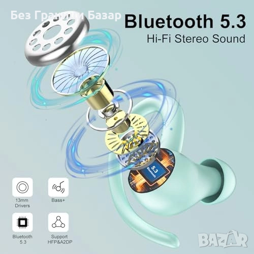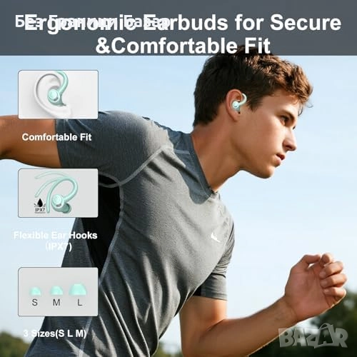 Ергономичен дизайн с меки силиконови накрайници и стабилни куки за уши