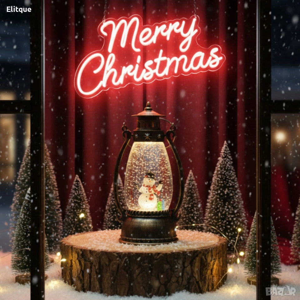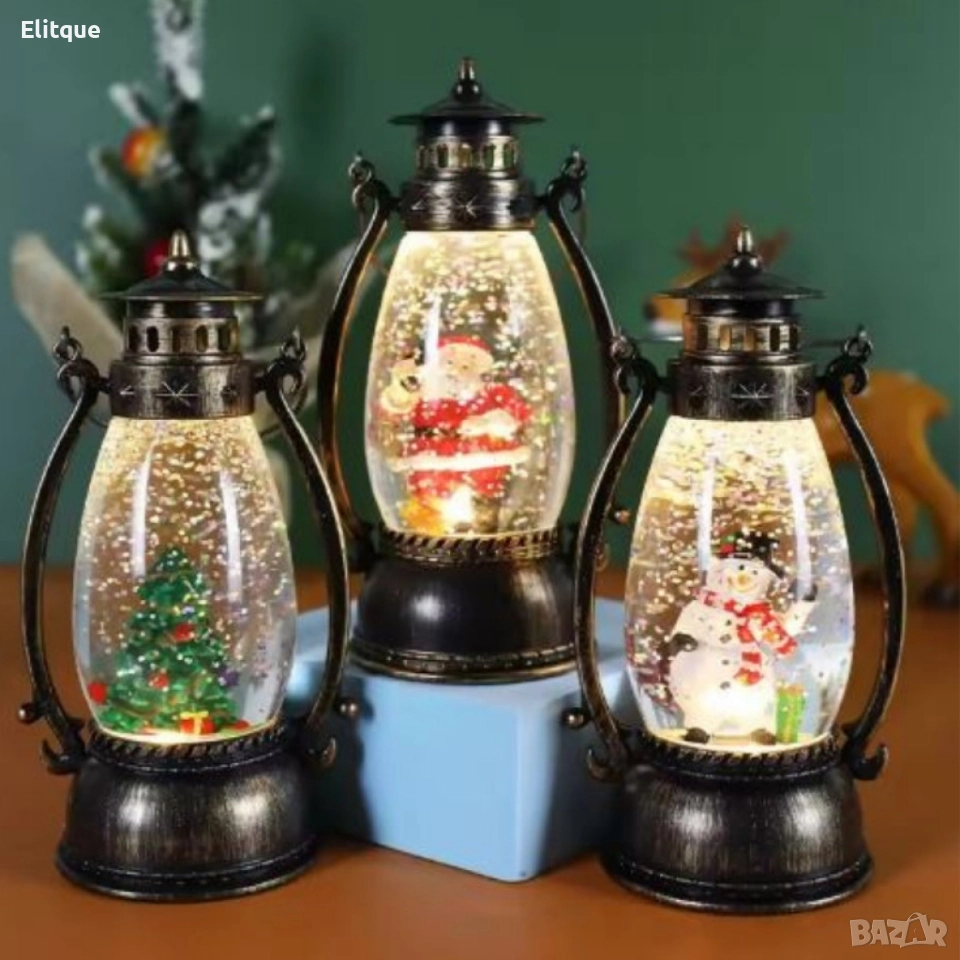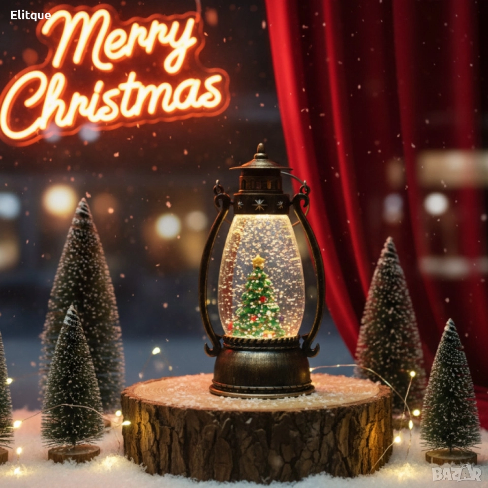 Ретро LED коледен фенер с падащ сняг – магическа светлина и празничен уют