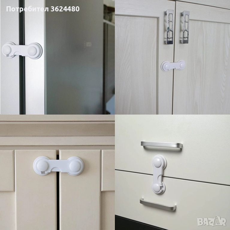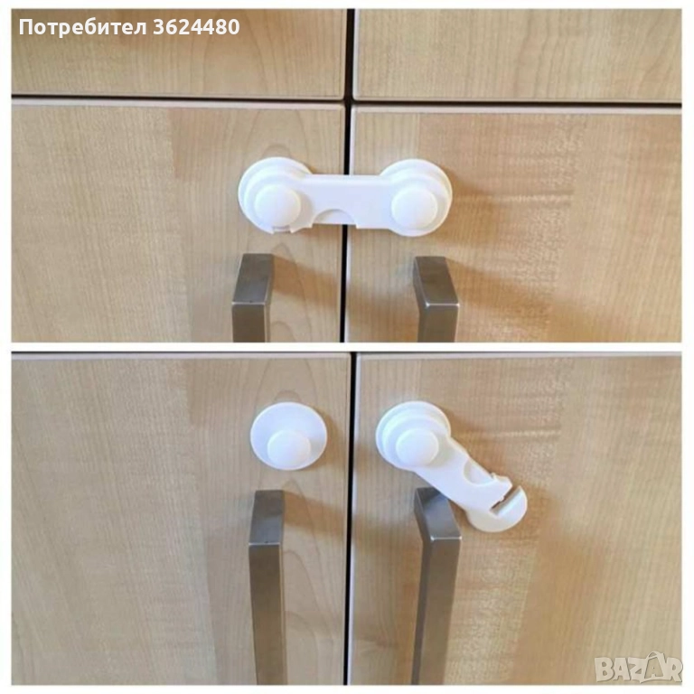 Предпазител за кухненски вратички и шкафове със заключване