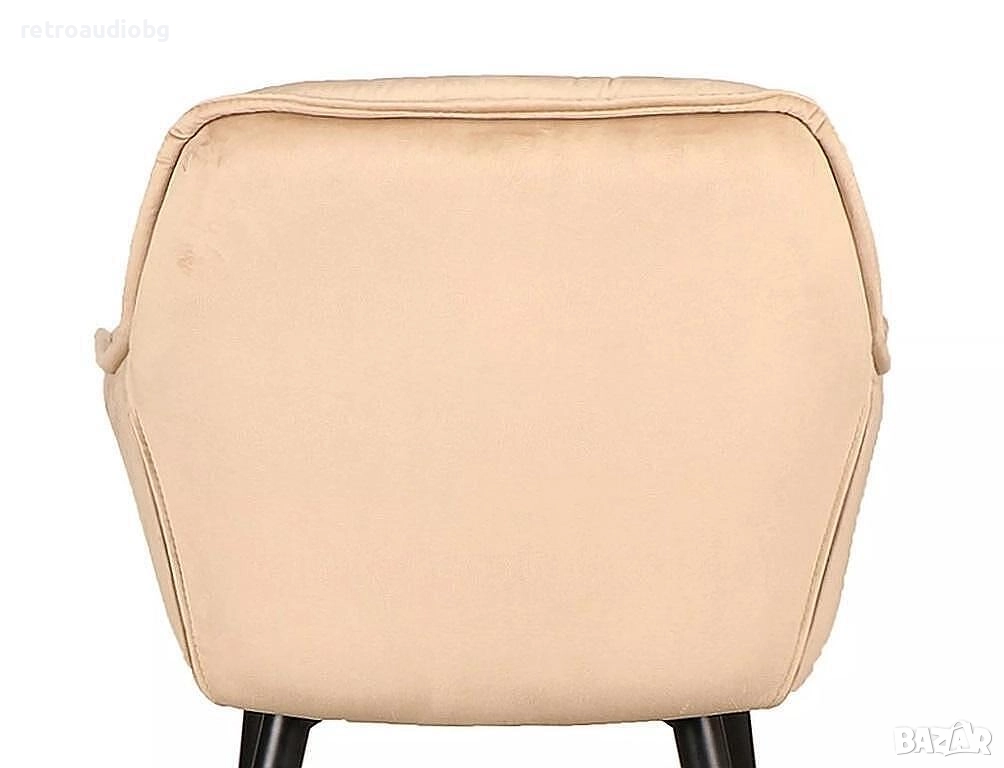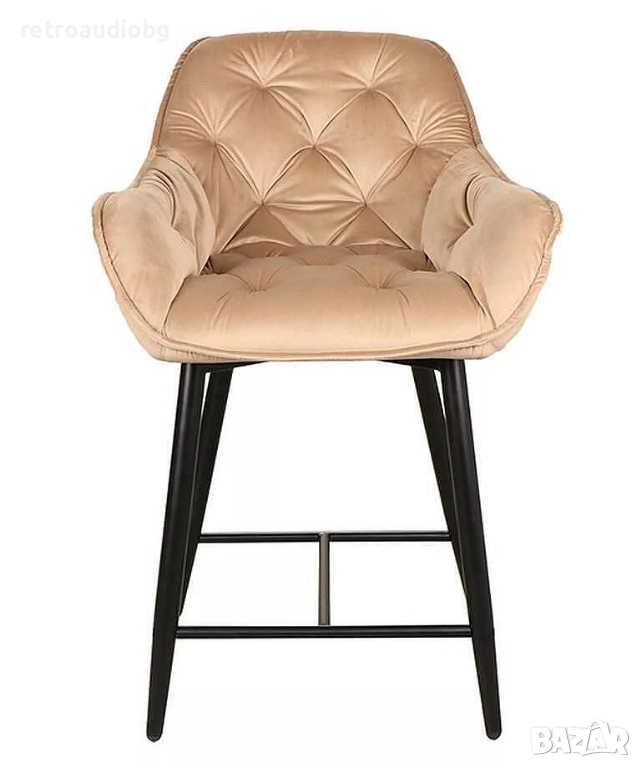 Предлагаме ви бар стол Чери кадифе – стилно и модерно решение за вашия дом или заведение, със средна височина. Той е с удобна седалка и висока облегалка, тапицирани с меко и приятно кадифе в 4 цвята. Подлакътниците осигуряват допълнителен комфорт и луксозно усещане. Краката са изработени от метал в черен цвят, с поставка за краката. Елегантен и стилен, бар стол Чери ще внесе изискана атмосфера във вашия дом, бар или ресторант!