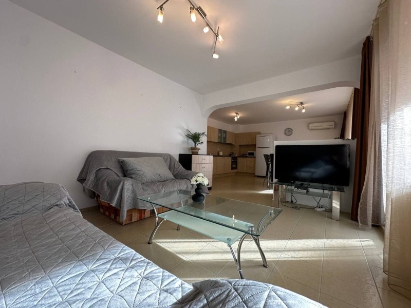 Поморие-просторен двустаен апартамент на 50 метра от централния плаж, в района на хотел Диана . Апартаментът се намира на 3-ти етаж в жилищна сграда с Акт 16, без такса поддръжка. Площта на апартамента е 97 кв.м., включително отделна килерче, а 0то, съгласете се, е приятен бонус от 0 и като цяло отличен квадратен метър за комфортен престой. Просторна всекидневна, уютна спалня, висококачествени мебели, безупречно жилищно състояние - тук всичко е 100% готово за комфортен престой или преместване без допълнителни разходи.