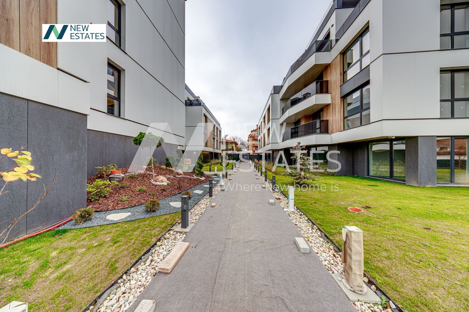Комплексът впечатлява с модерна архитектура, чисти линии, дървени акценти, алеи и спокойна среда, която носи усещане за висок клас още от първата стъпка вътре.