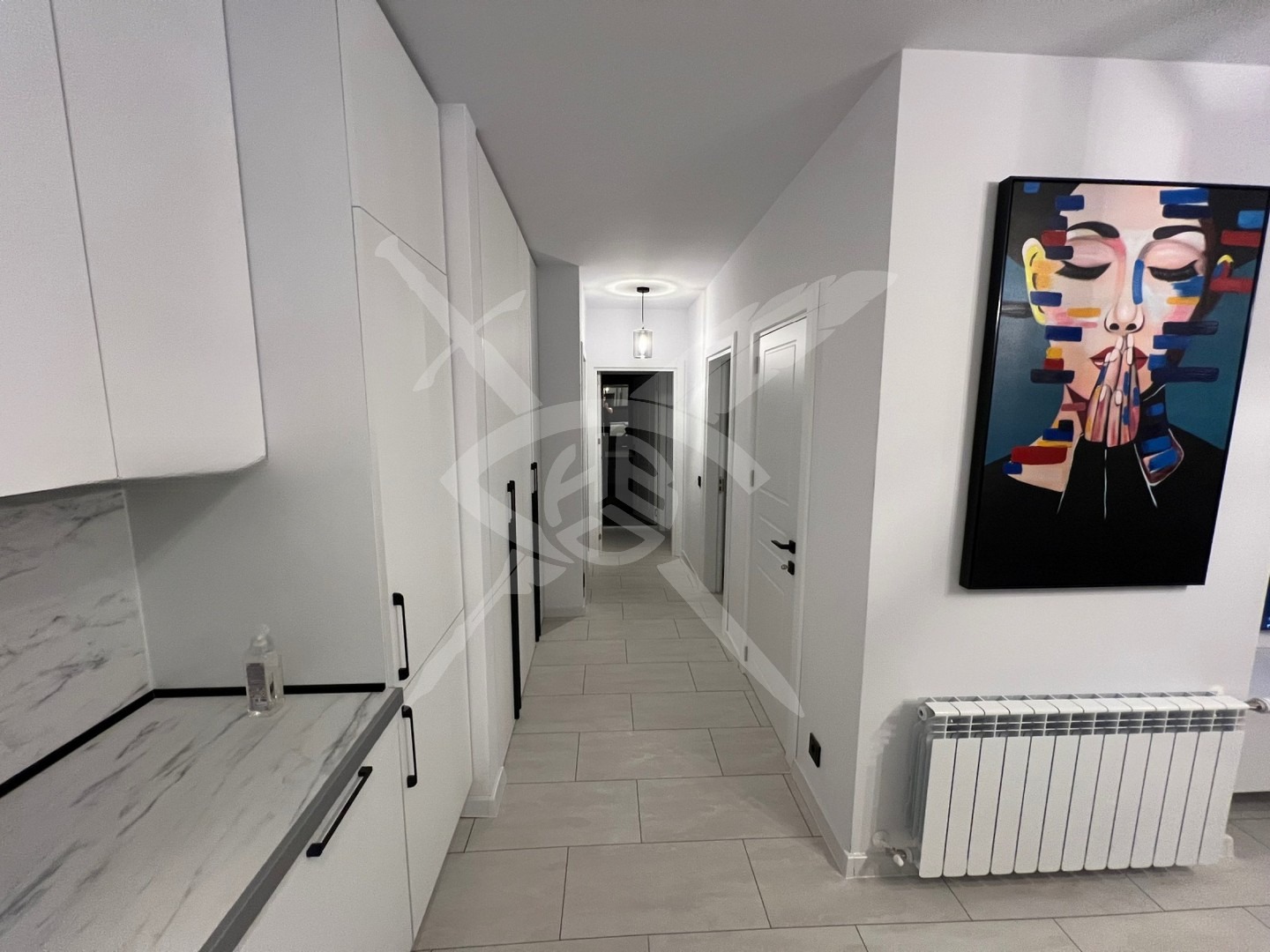 РАЗПРЕДЕЛЕНИЕ: Жилището разполага с чиста площ от 120 кв.м., разпределена във входно антре, кухня с хол, две спални и две бани с тоалетни.
