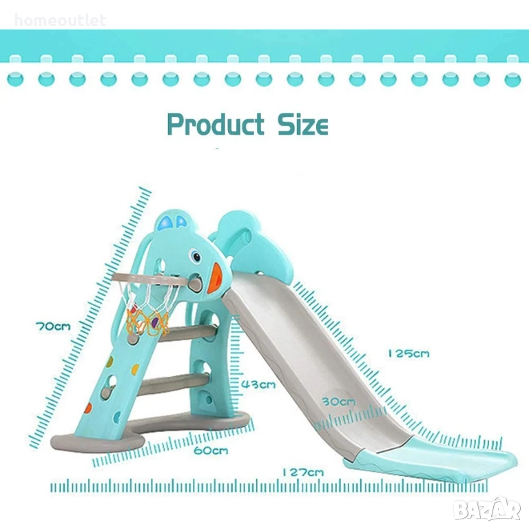 Тази пързалка е изработена от висококачествена и екологично чиста HDPE пластмаса, която е нетоксична, без мирис и устойчива на влага и плесен.