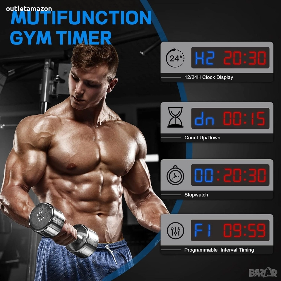 Таймер за фитнес, LED интервален таймер с дистанционно управление