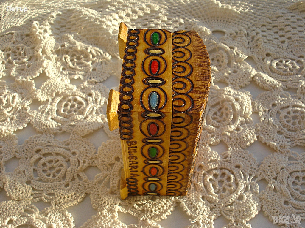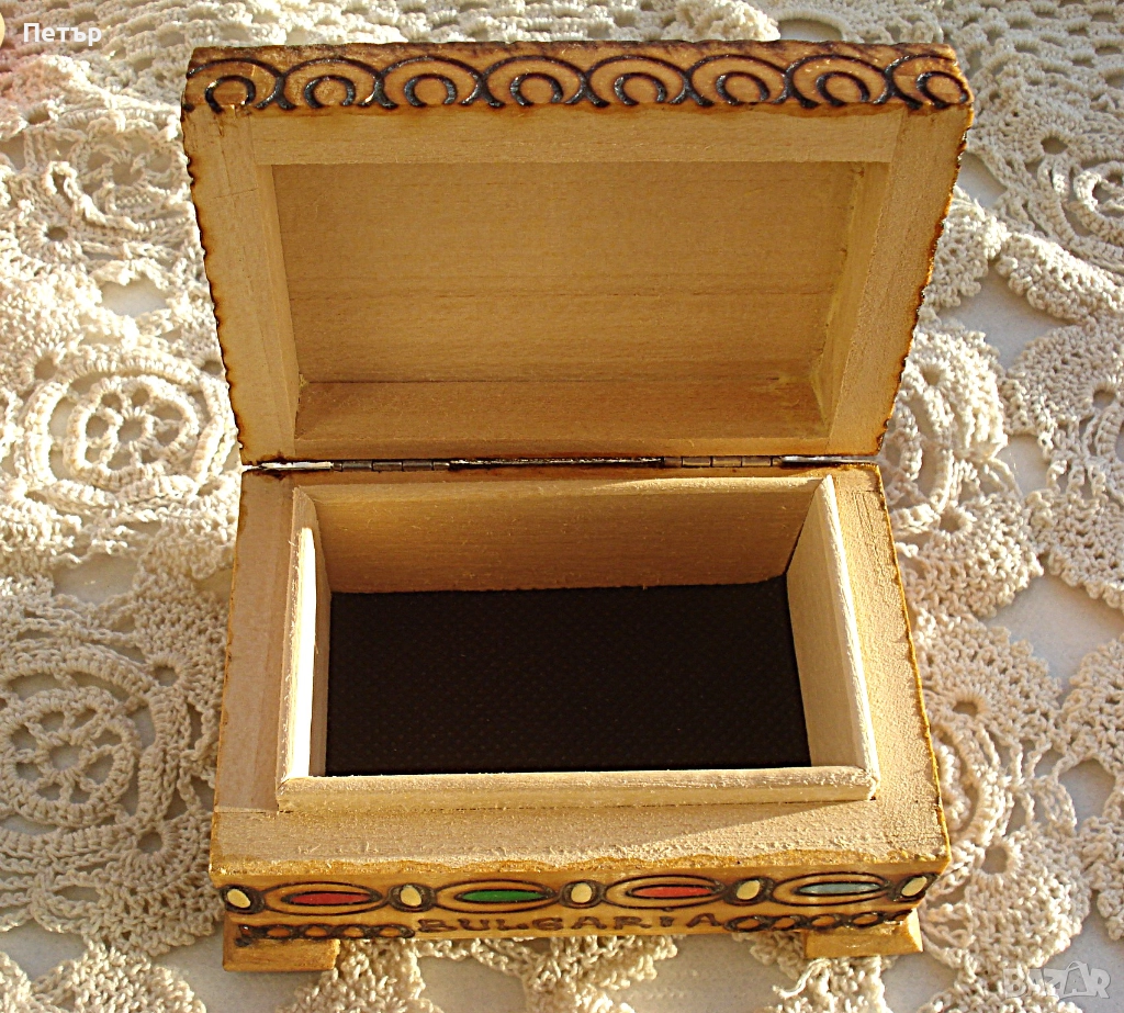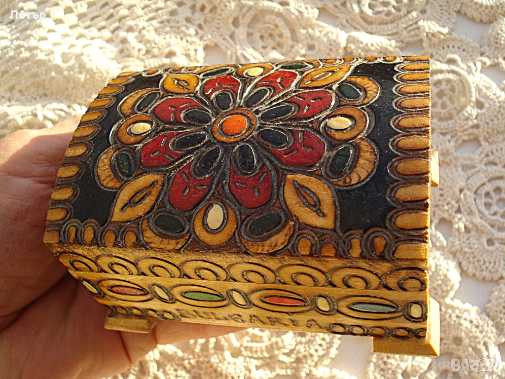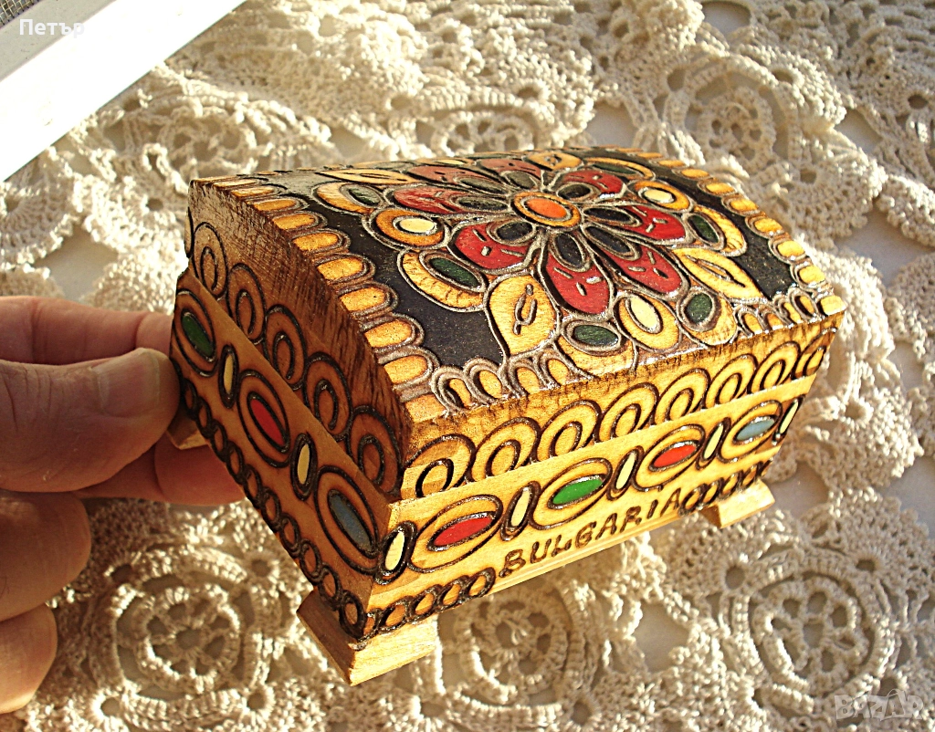 Нова ръчно изработена, пирографирана и изрисувана кутия за бижута.