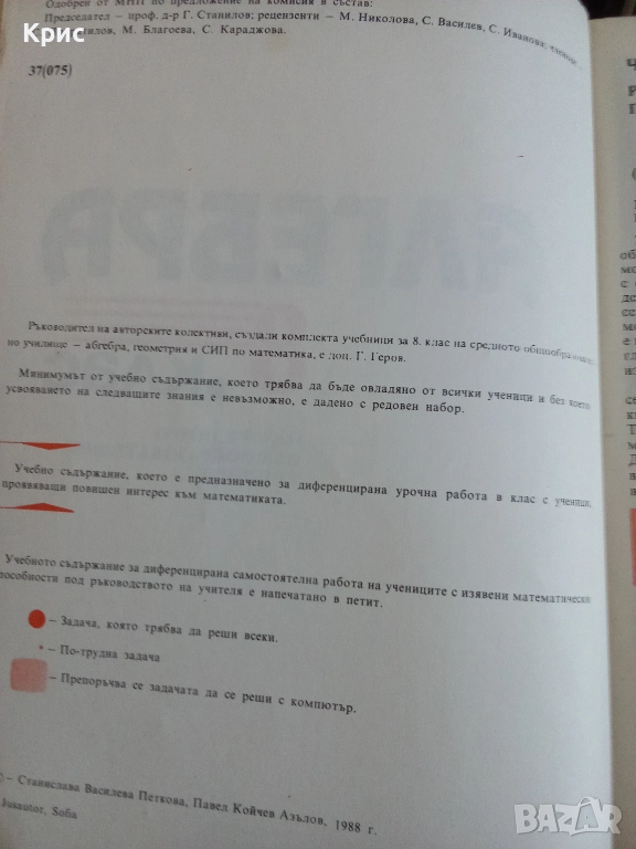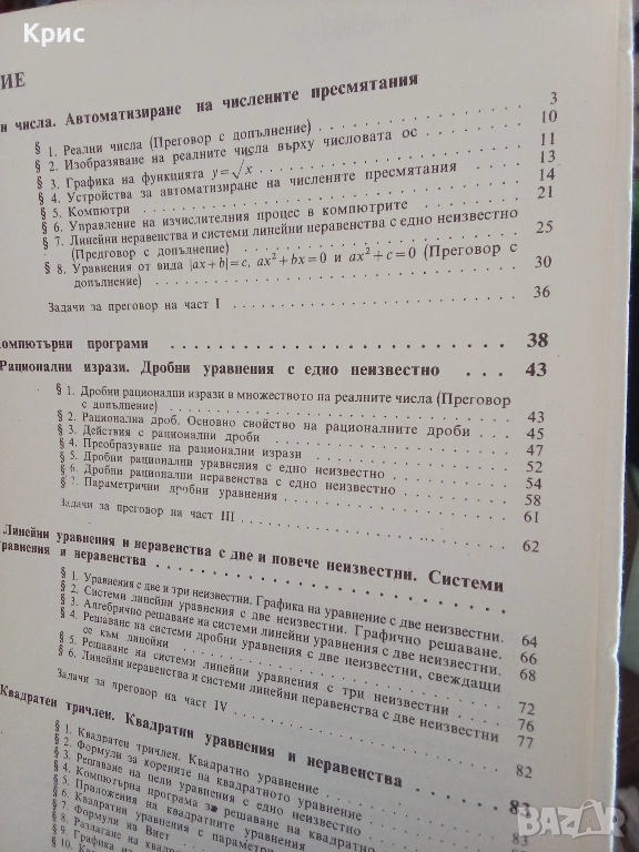 Стар учебник по алгебра за осми клас.
