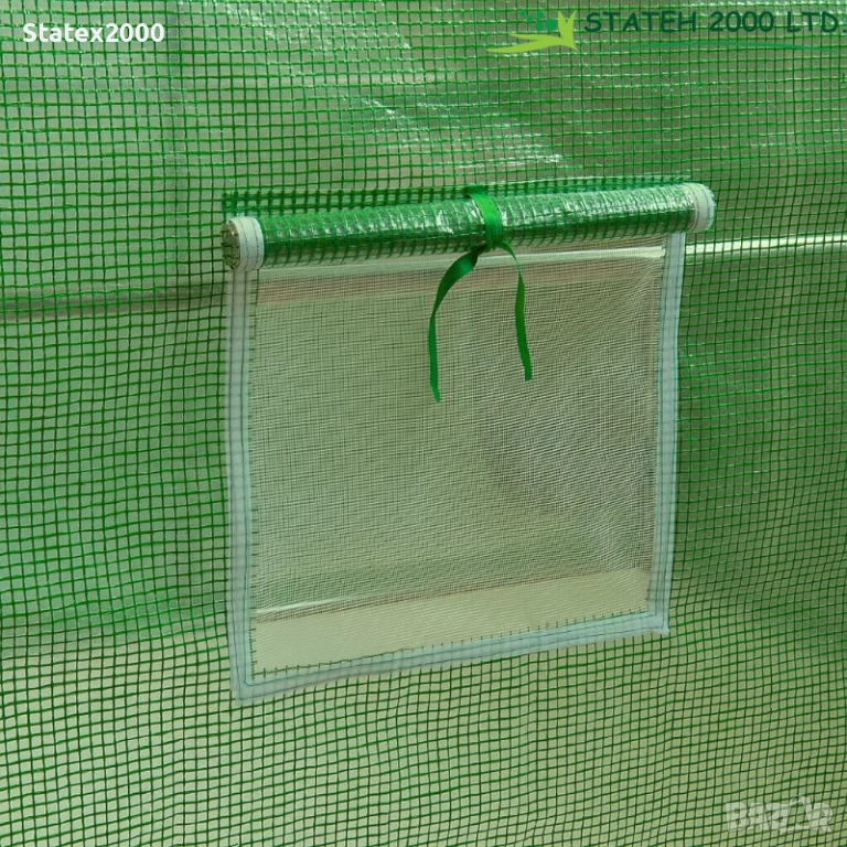 • Найлонов материал: Покритието на оранжерията е направено от армиран найлон. Този материал е устойчив на разриване и е усилен със специални влакна или мрежа за повишена здравина.