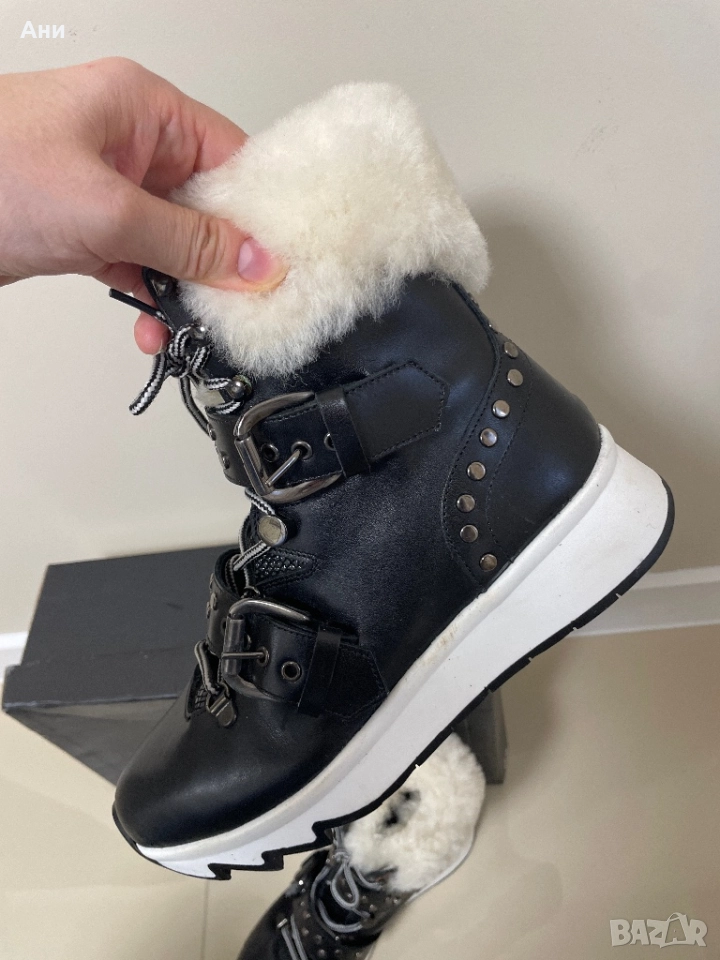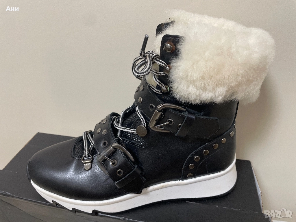 Ботите са изцяло от естествена кожа и вълна с изолираща подметка!Много топлят!Обувани веднъж,но се оказаха малки за мен!