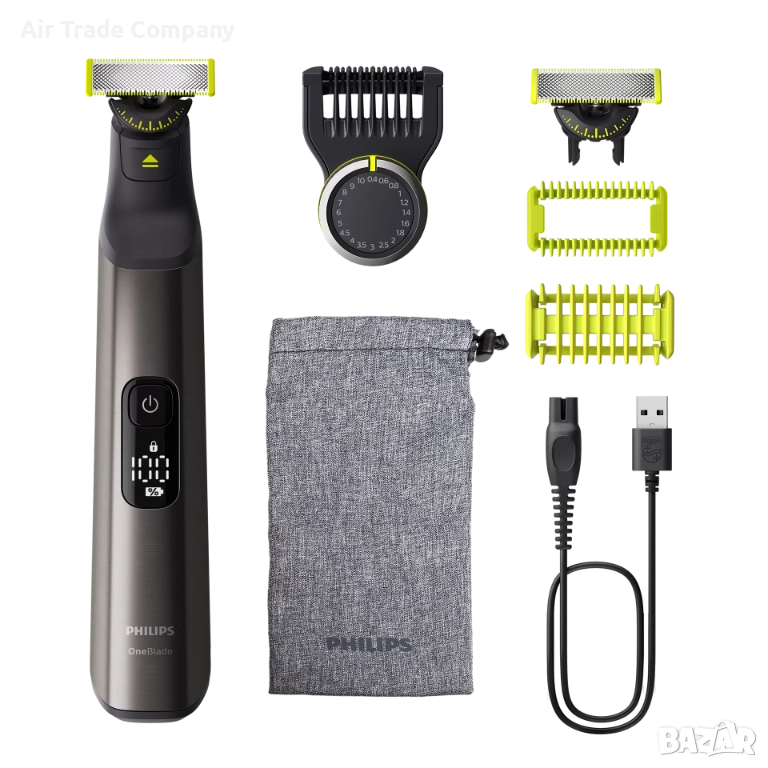 Philips OneBlade Pro Face + Body е иновативен инструмент, който подстригва, оформя и бръсне косъмчета с всякаква дължина, без нужда от множество уреди. Получавате ножче за лице и ножче с предпазител за тяло, заедно с гребен с 20 настройки за прецизно оформяне. Подходящ е за сухо и мокро бръснене, а дизайнът му го прави изключително удобен както у дома, така и в движение.