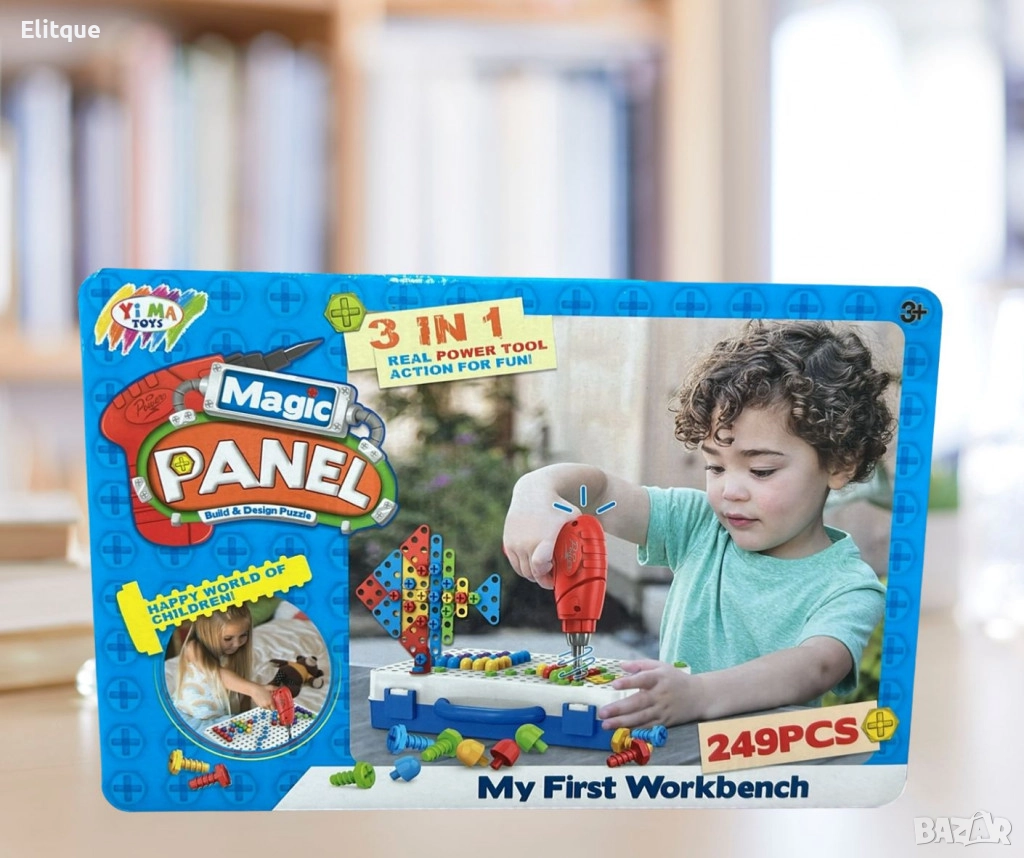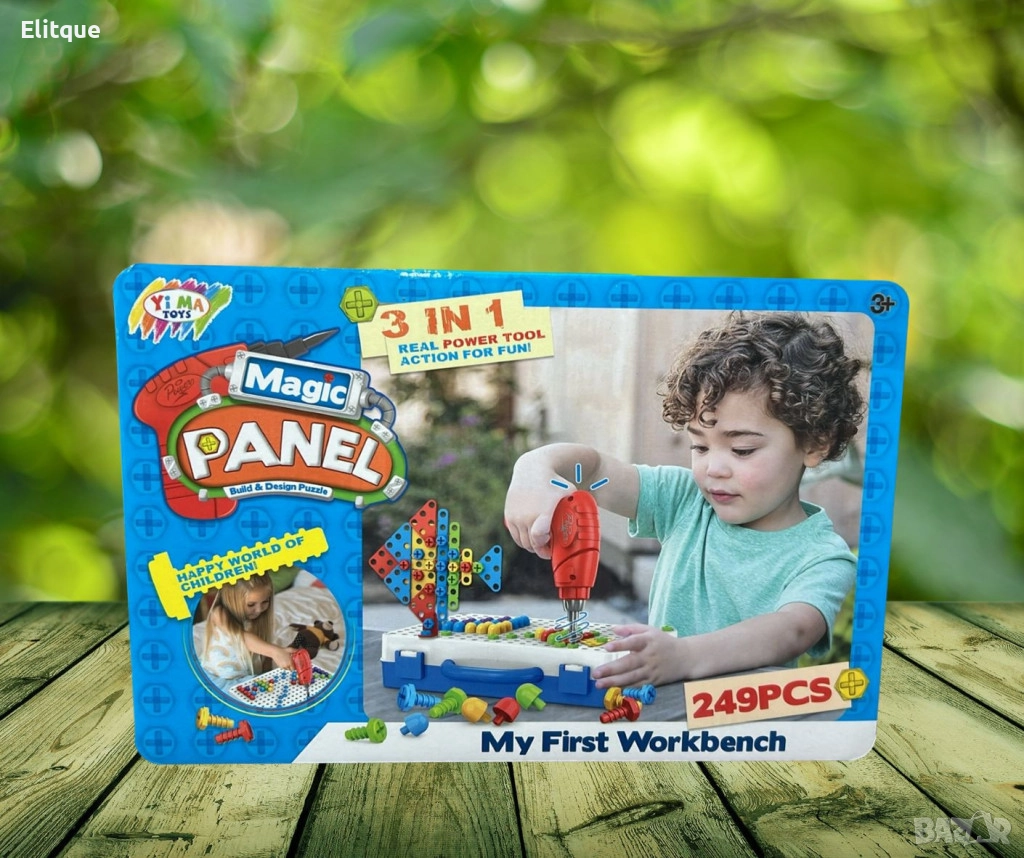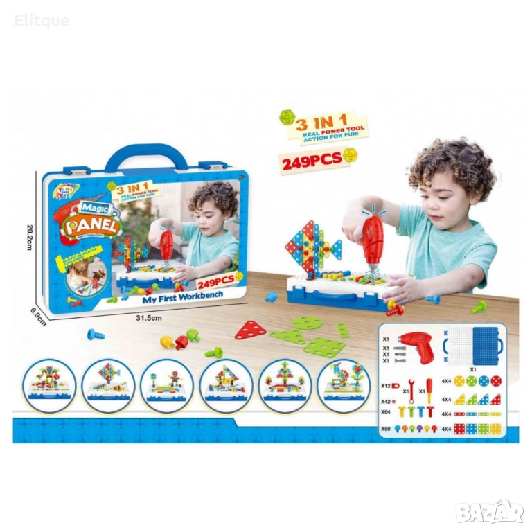 Детска мозайка с винтоверт в куфар е перфектно забавление за малки деца. Този комплект предлага на децата възможността да създадат разнообразни и креативни модели, като същевременно развиват своите умения за сглобяване и въображение.