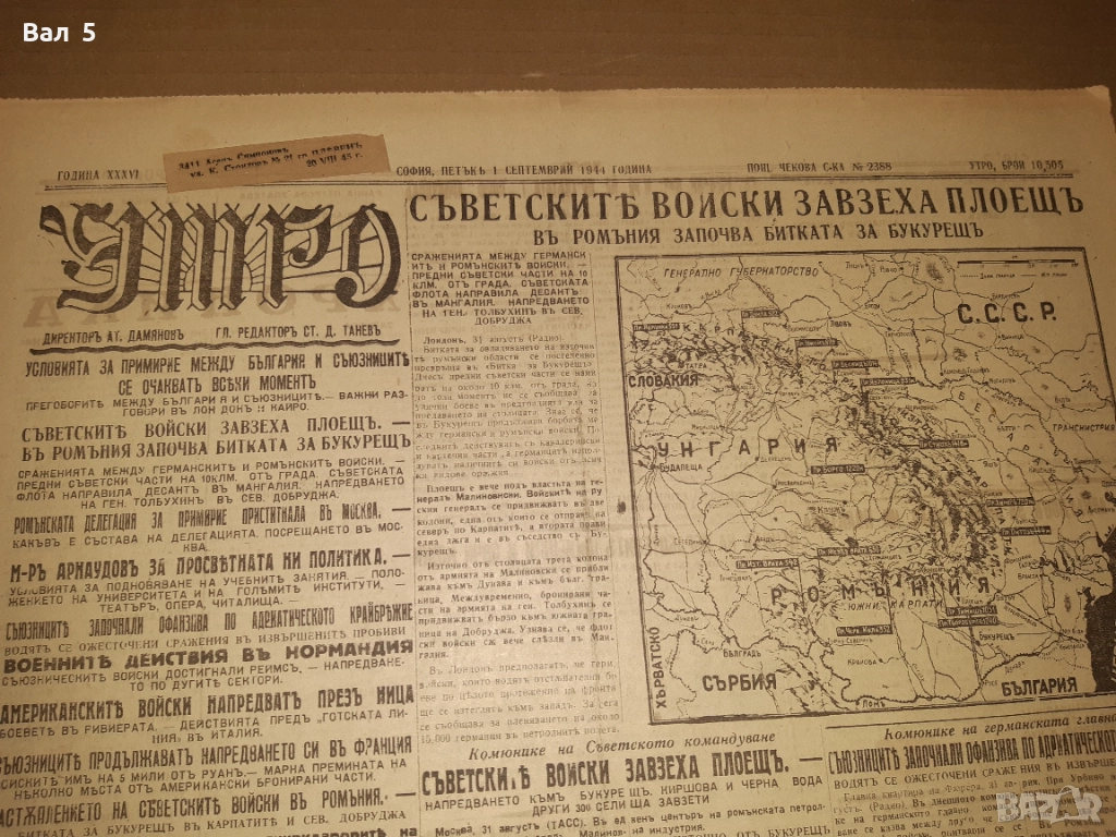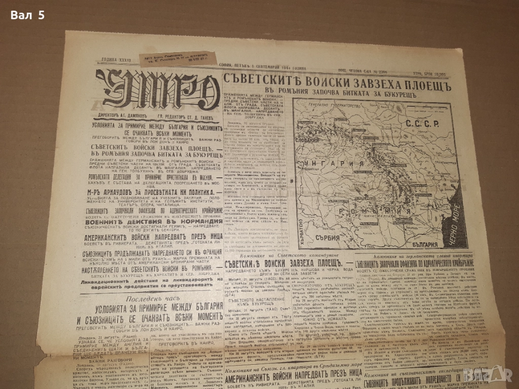 Най - популярният и многотиражен вестник в Царство България , излизал от 1911 г . до 09 СЕПТЕМВРИ 1944 г . ЕДИН ОТ ПОСЛЕДНИТЕ БРОЕВЕ НА ВЕСТНИКА , излязъл само в 2 страници и малък тираж . стгд . Разполагам и с броеве от 31 август , 2 - ри , 3 -ти , 5-ти , 6-ти и 8 - ми СЕПТЕМВРИ 1944 г .