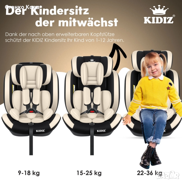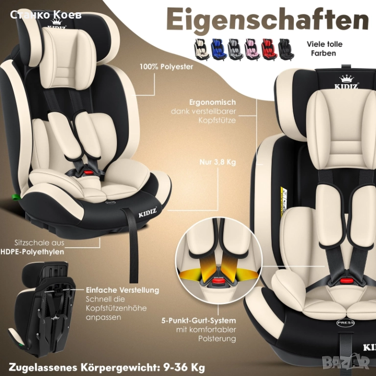 - Подходящо за деца с тегло между 9 и 36 кг