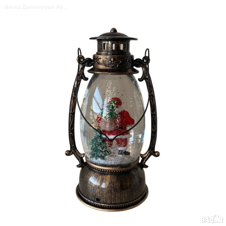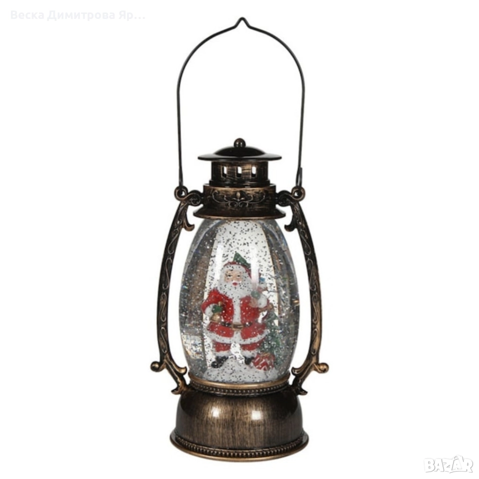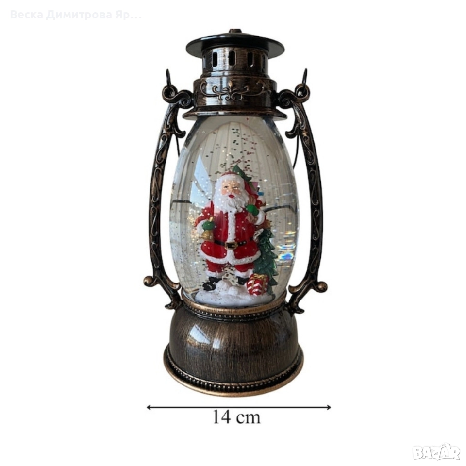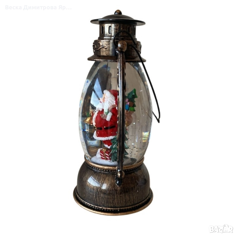 Коледен декоративен фенер – LED светлина, въртяща се фигурка на Дядо Коледа, снеговалеж и музика