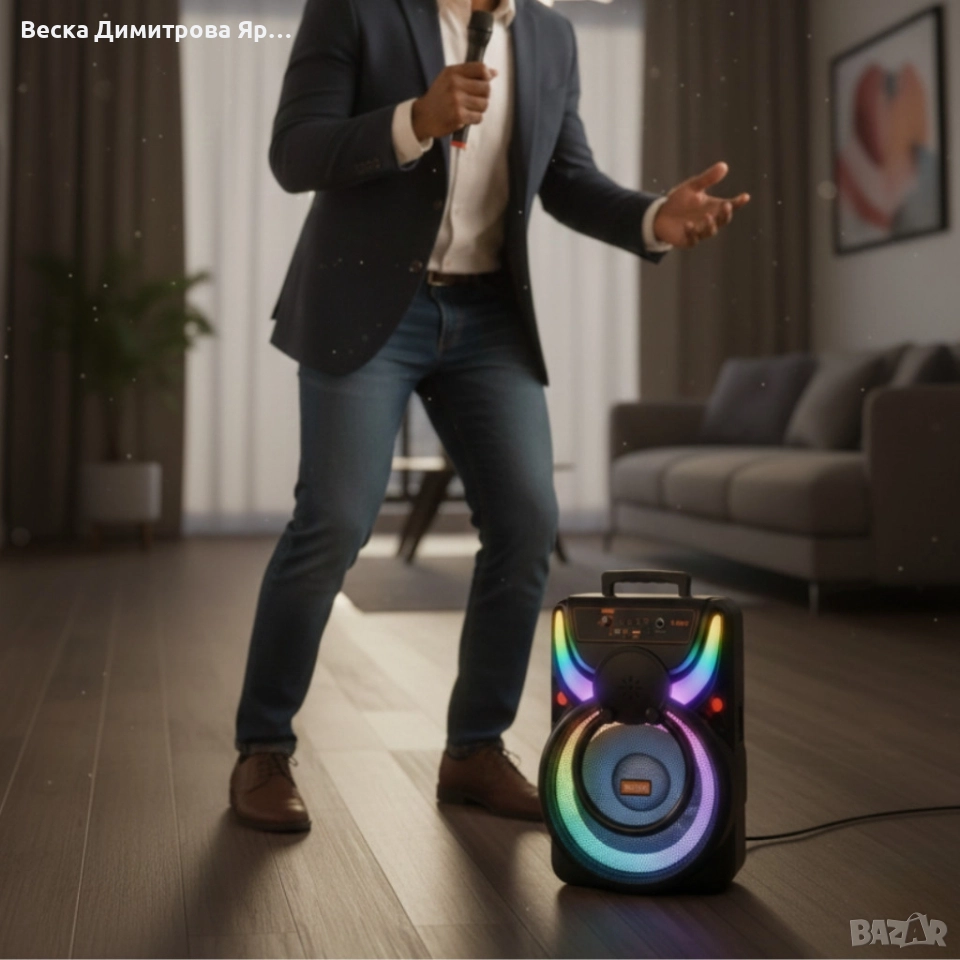 Преносима Bluetooth тонколона WSJAR E-8807 – Караоке, FM, LED ефекти → Обява 52754474