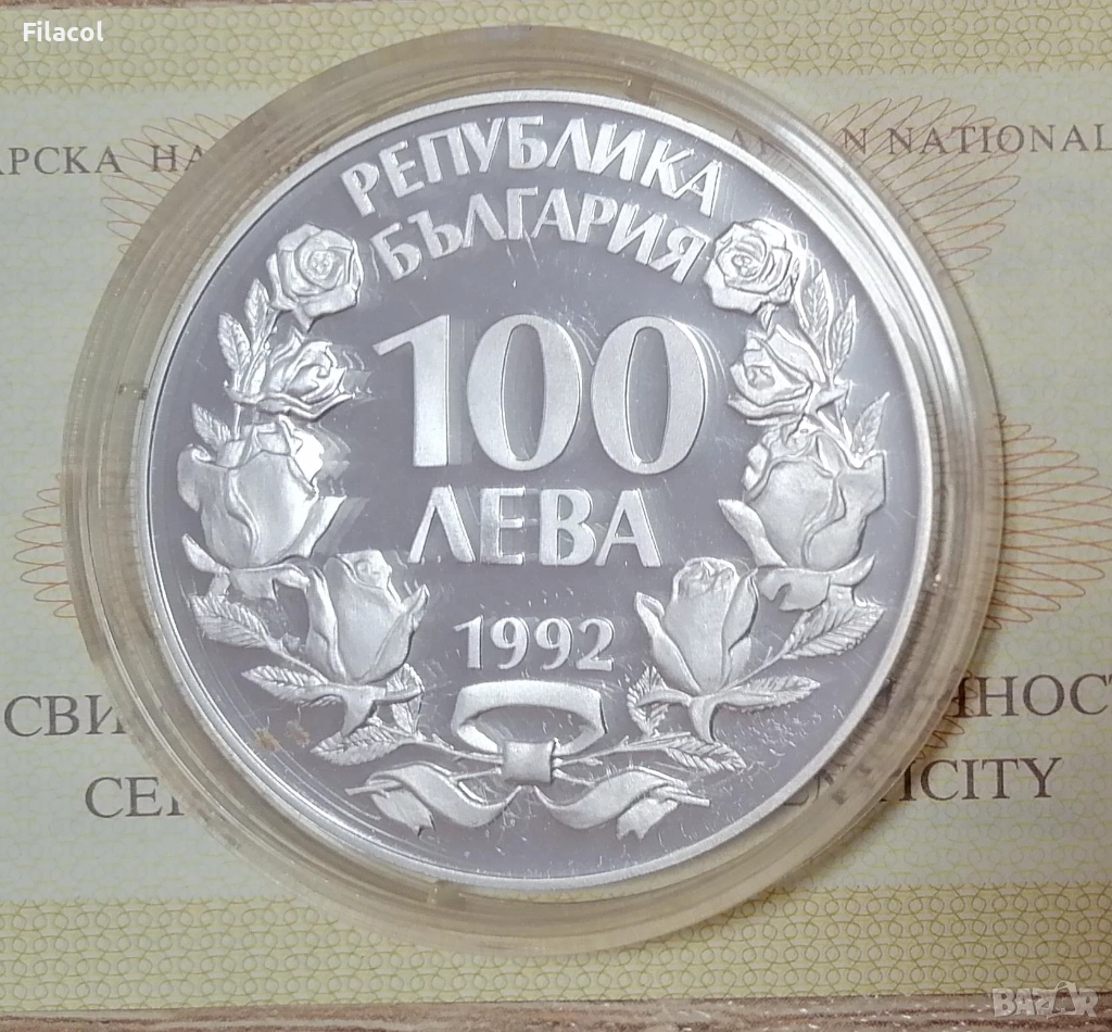 100 лева 1992 год. Застрашени диви животни - Орел, снимка 1 - Нумизматика и бонистика - 52754603 100 лева 1992 год. Застрашени диви животни - Орел, снимка 2 - Нумизматика и бонистика - 52754603 1/2