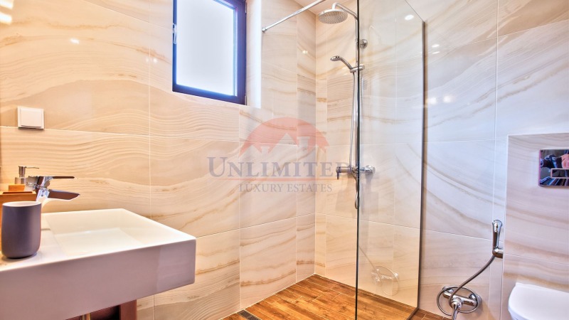 Втори етаж - спалня,баня с душ кабина , гардеробно , тераса.
