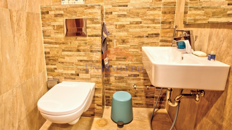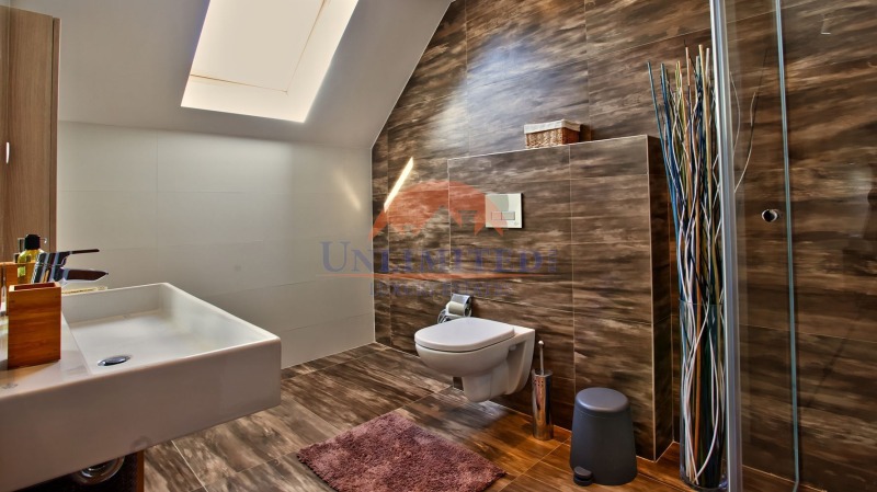 Първи етаж- две спални, 2 бани (едната от които с вана) с тоалетна;