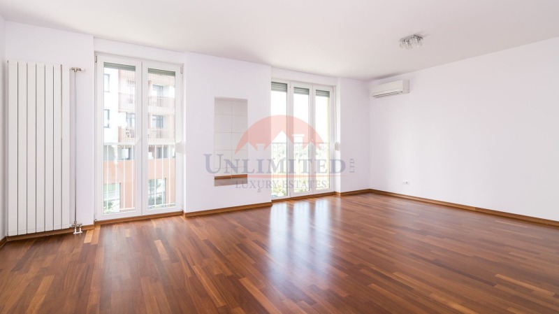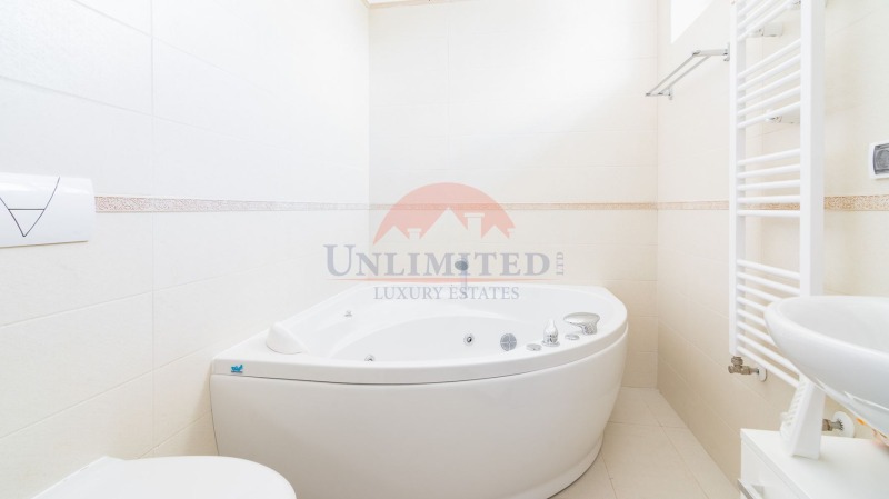 Residential Park Sofia - 3-story house in a compound with 24-hrs. security and a kids play ground. 1st floor: Big living room, dining room and a kitchen. Guest toilet. 2nd floor: 2-bedrooms with 2-bathrooms. 3th floor: 2-bedrooms with 2-bathrooms. Garage. Unfurnished. Swimming pool, SPA and fitness in the compound.