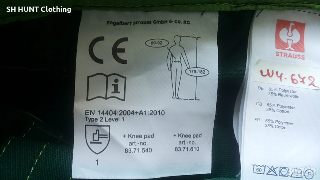Марка: Engelbert Strauss Work Trouser - работен панталон. Има джоб на коляното за наколенка , гъба. Размер: 50 / M - ширина в талията при опънат ластик 48 см , ширина в талията при свит ластик 39 см , дължина 106 см.