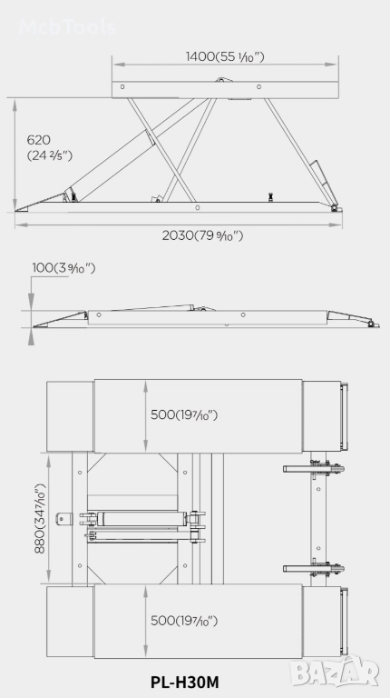 Подемникът RockForce H30M е проектиран за професионална работа в автомобилни сервизи, пунктове за поддръжка и гаражи, където надеждността и безопасността са на първо място. С товароподемност 3 тона той позволява лесно обслужване както на леки автомобили, така и на лекотоварни превозни средства.