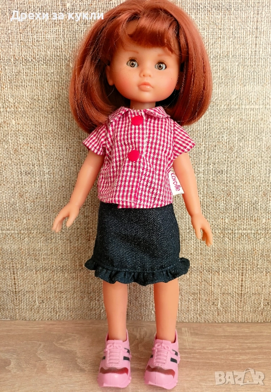 Рядка, колекционерска кукла Corolla Les Cheries, френско производство, висока 33 см, със стройно тяло и красива червена коса. Очите се затварят, когато лежи. Вече не се произвежда. Облечена във фабрични дрехи - 44 евро.